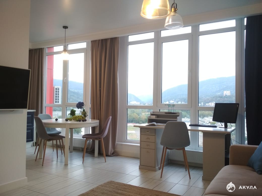 Предлагается к продаже шикарная квартира с хорошим ремонтом в центре Сочи! Жилое пространство выгодно распланировано в кухню-гостиную и спальню. Ремонт выполнен в современном стиле дорогостоящими материалами. Квартира продается вместе с мебелью. Жилой комплекс удачно расположен в центре Сочи. Есть наземная парковка и многоуровневая закрытая парковка , а также гаражи. На территории комплекса расположены детская и спортивные площадки. Также на территории комплекса предусмотрены: продуктовый магазин, аптека, кофейня, кафе, салон красоты, детская зона, строительные магазины. До ТЦ Море Молл, ТЦ Александрия и МорПорта 10-15 минут ходьбы. В пешей доступности по безопасному переходу к школе и садику. Ваш ребенок сможет в школу ходить безопасно. Пол-керамогранит, теплый пол везде, сантехника GROHE, дух.шкаф, эл.плита, стир.машина, вытяжка - Bosh, холодильник -Libher, кондиционер, микроволновая печь, освещение Maytony. Ремонт дизайнерский, мебель, техника. Вопросы по телефону.