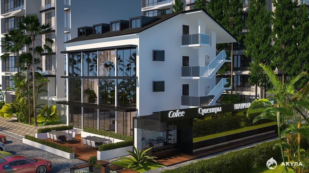 Развитая инфраструктура: в 300 метрах автобусная остановка, жд станция. Рядом кафе, столовые, рестораны, красивые парки, океанариум, дельфинарий, зоопарк, бассейн, спа. Продуктовые магазины и аптеки.