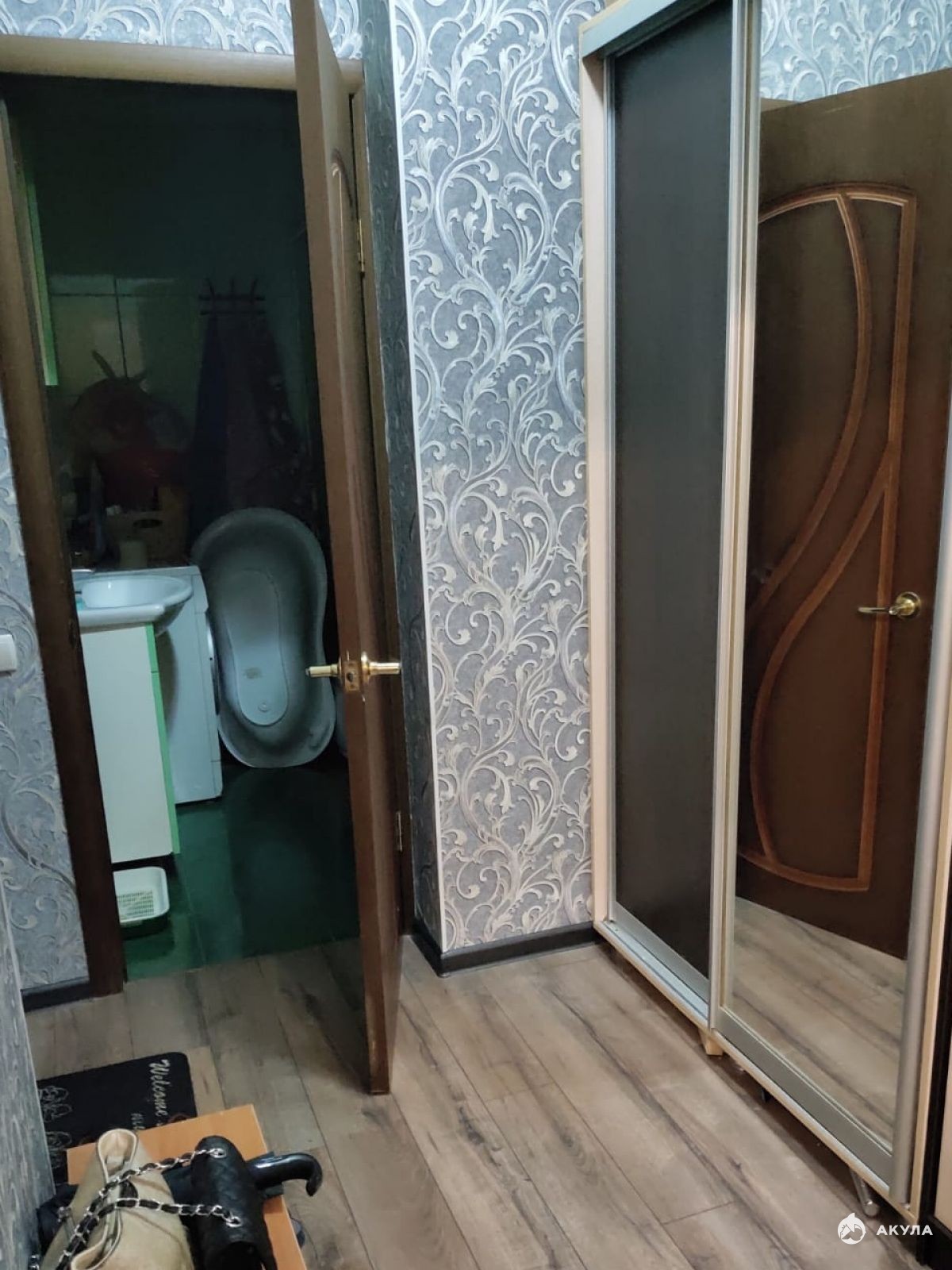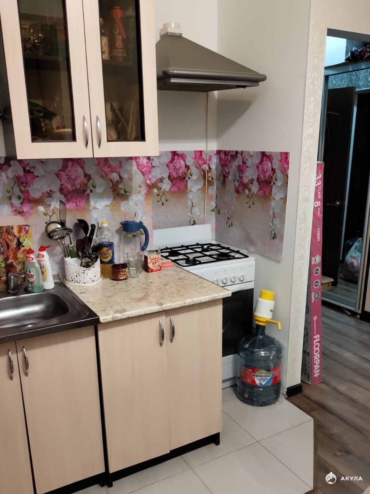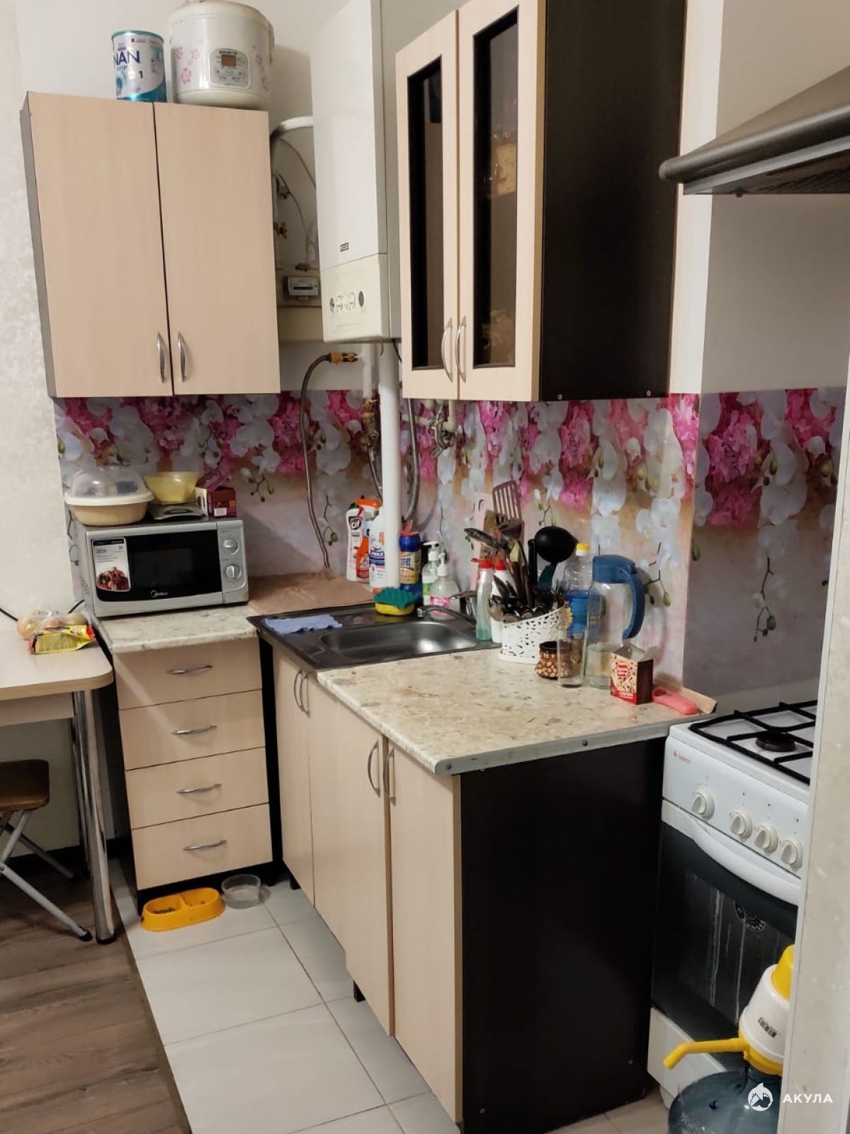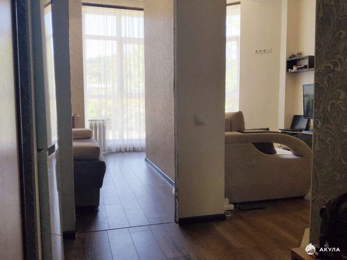 Разделена квартира на кухню-гостиную и отдельную комнату.