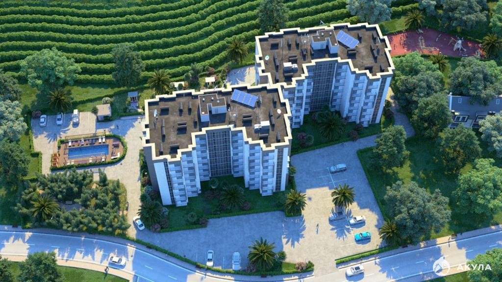 Квартира представленв без отделки. Центральные коммуникации, своя котельная. Панорамный вид на горы и чайные плантации.