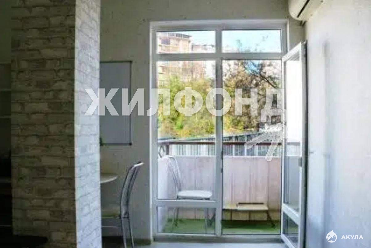 Квартира площадью 30м2 (28м2 + балкон 2 м2) - просторная комната (правильной и легко планируемой формы) с панорамным окном и балконом (вид на горы) , выделенная кухня, совмещенный санузел.