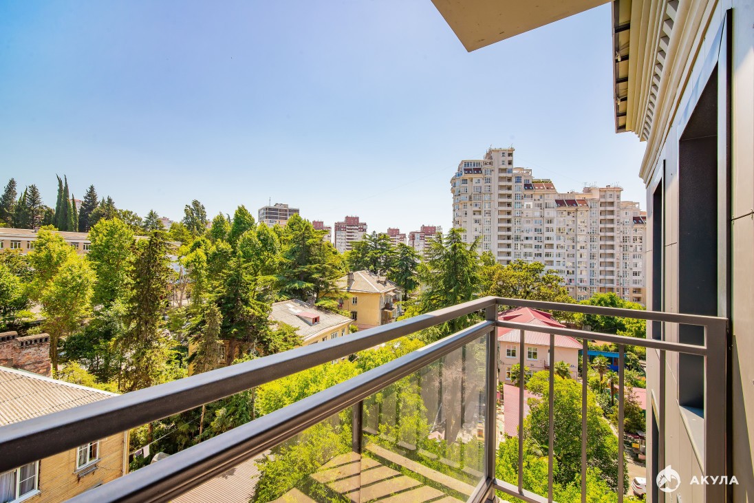 Высокие потолки 5 метров, панорамные окна 4, 5 метра, балкон.