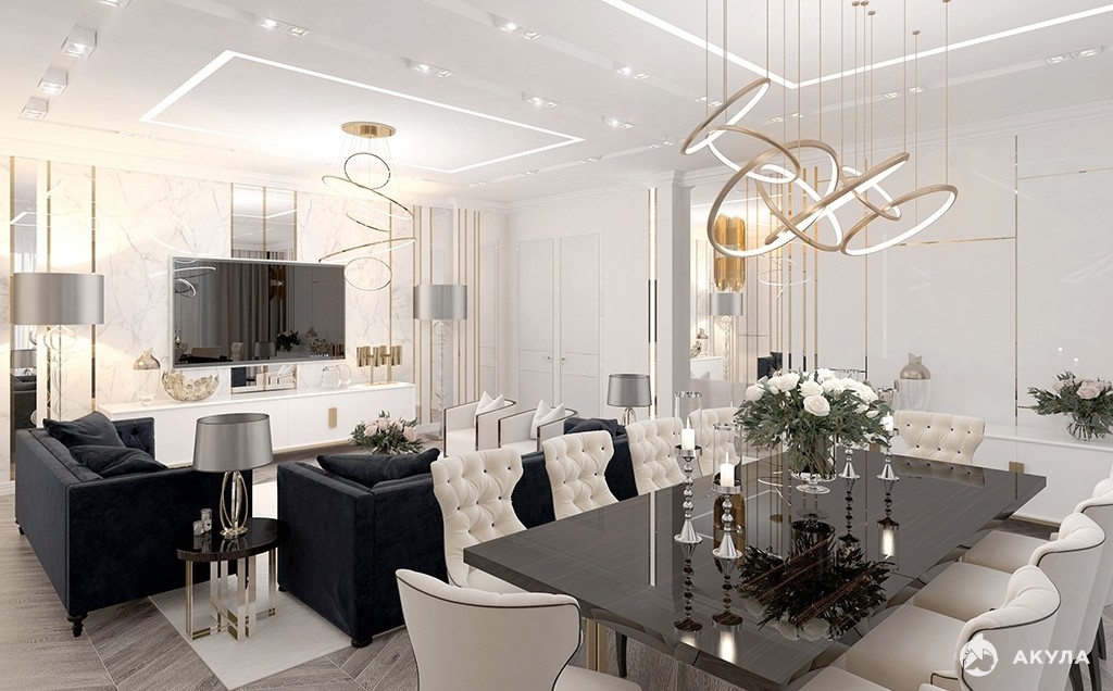 Идеальная планировка для семейных людей или тех, кто любит устраивать дома шумные вечеринки. Есть где развернуться!