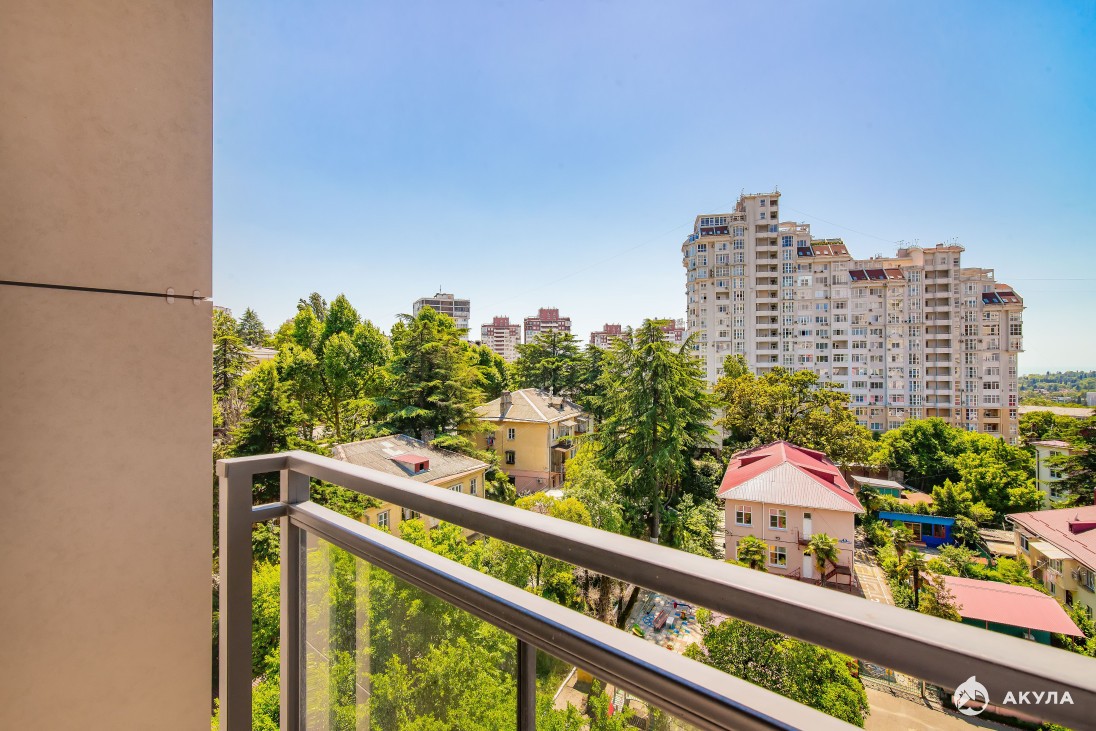 Высокие потолки 5 метров, панорамные окна 4, 5 метра, балкон.