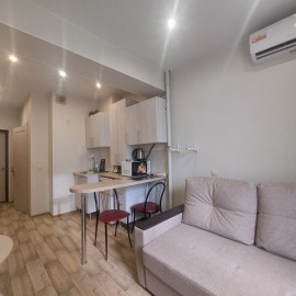 Продам однокомнатную квартиру площадью 26 м2 в пешей доступности от моря Вид на море! Квартира распланирована в кухню-гостинную, зону спальни, санузел совмещен Мебель и техника остается 800 метров до пляжя «Русалочка» по ровной благоустроенной набережной реки...
