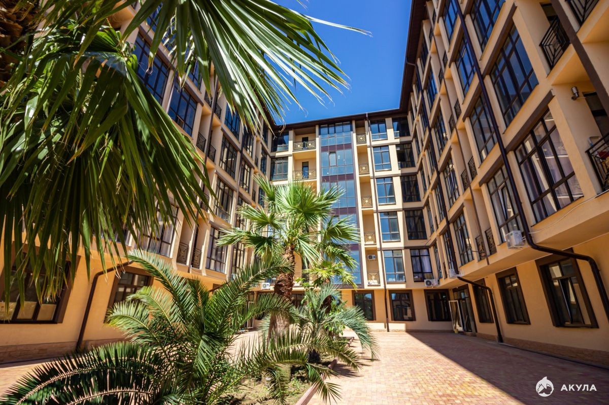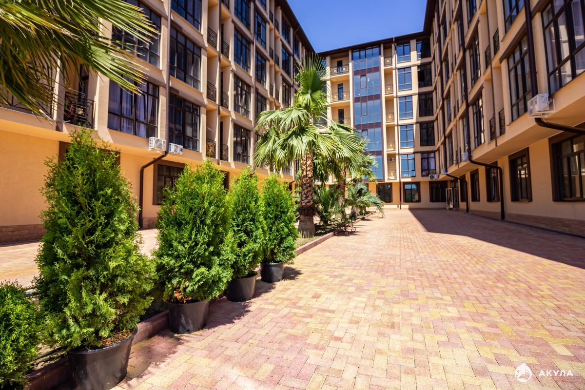 Закрытая территория, консьерж, бесшумный лифт, видеонаблюдение, детская площадка, на территории высажены пальмы, пешая доступность до моря, Сочи Парк, Имеретинская набережная в пятнадцати минутах ходьбы.
