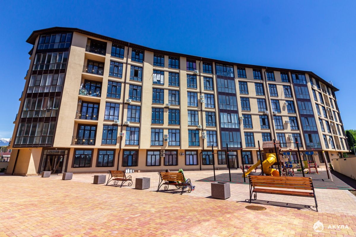 Закрытая территория, консьерж, бесшумный лифт, видеонаблюдение, детская площадка, на территории высажены пальмы, пешая доступность до моря, Сочи Парк, Имеретинская набережная в пятнадцати минутах ходьбы.