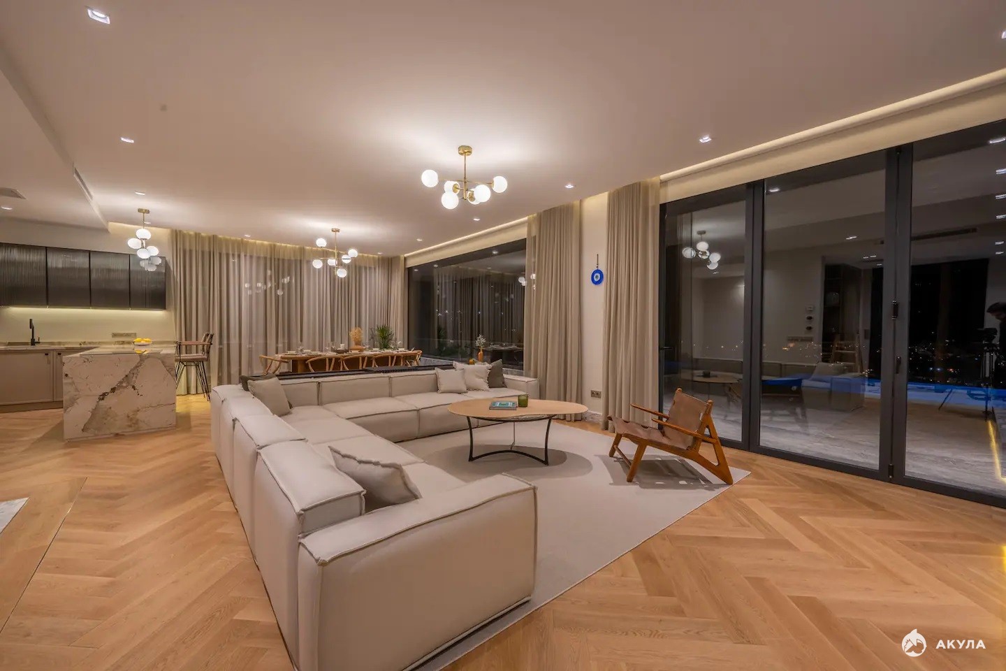 Премиальная инфраструктура комплекса - уникальная парковая зона, ресторан с панорамным видом на море, собственный закрытый пляж, премиальные спа-процедуры, тренажерный зал и спортивные площадки, включая сквош и гольф-симулятор, доступ в зоны проведения самых статусных мероприятий нашей страны