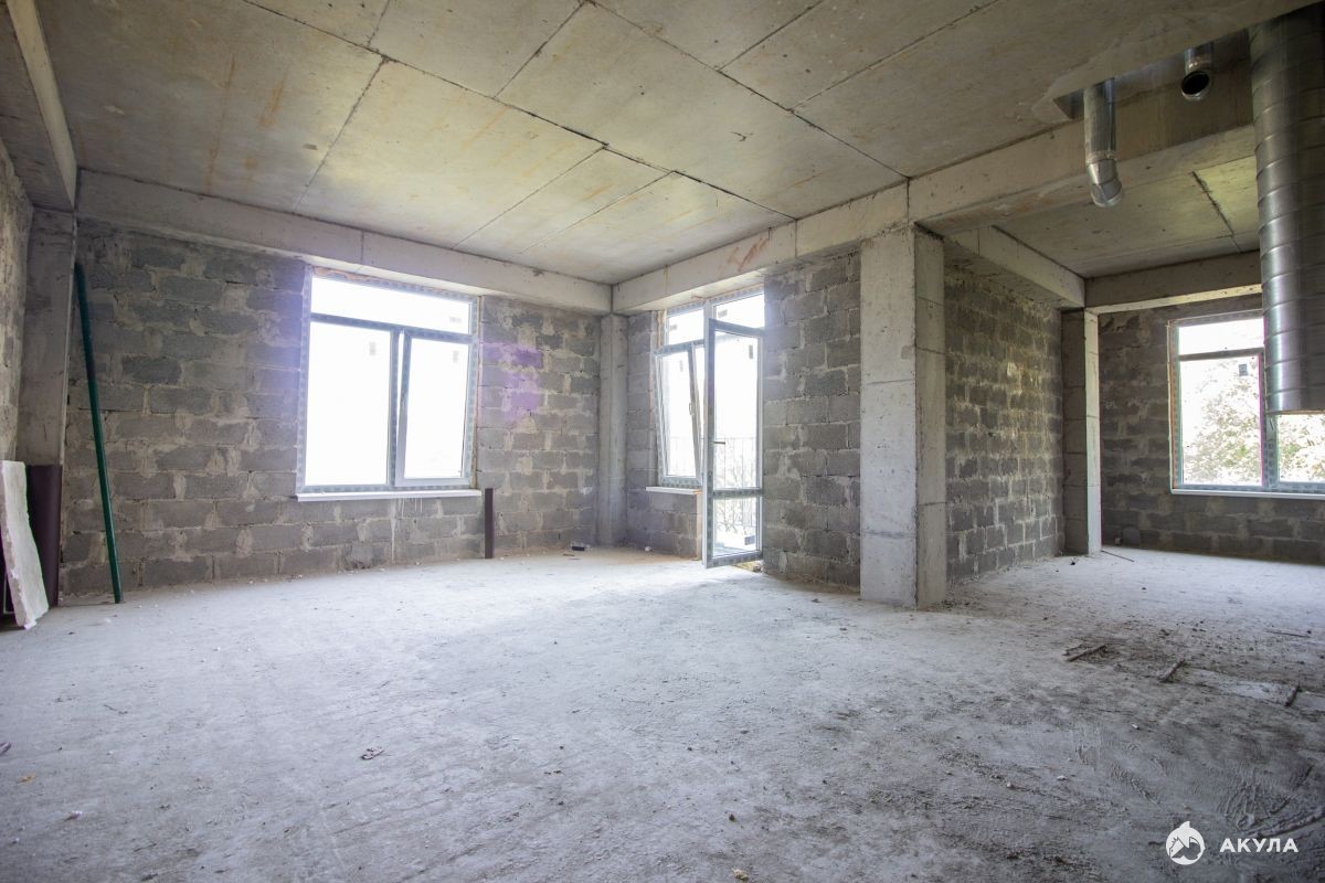 Квартира свободной планировки, без отделки. Отделка мест общего пользования: пол - керамогранит, стены - декоративная штукатурка с покраской.