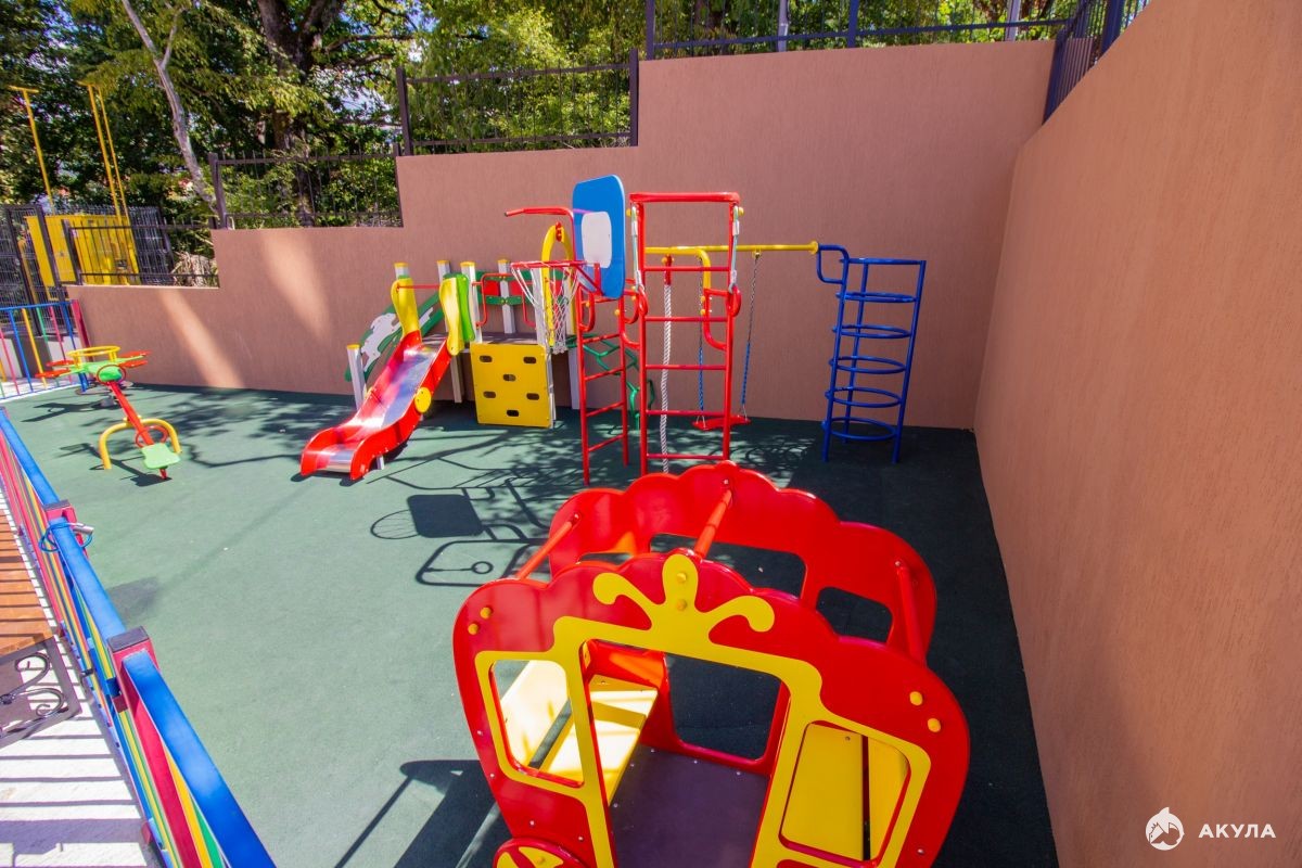 Двухуровневый подземный паркинг, помещения коммерческого назначения. На придомовой территории проектом предусмотрена детская площадка, зона отдыха.