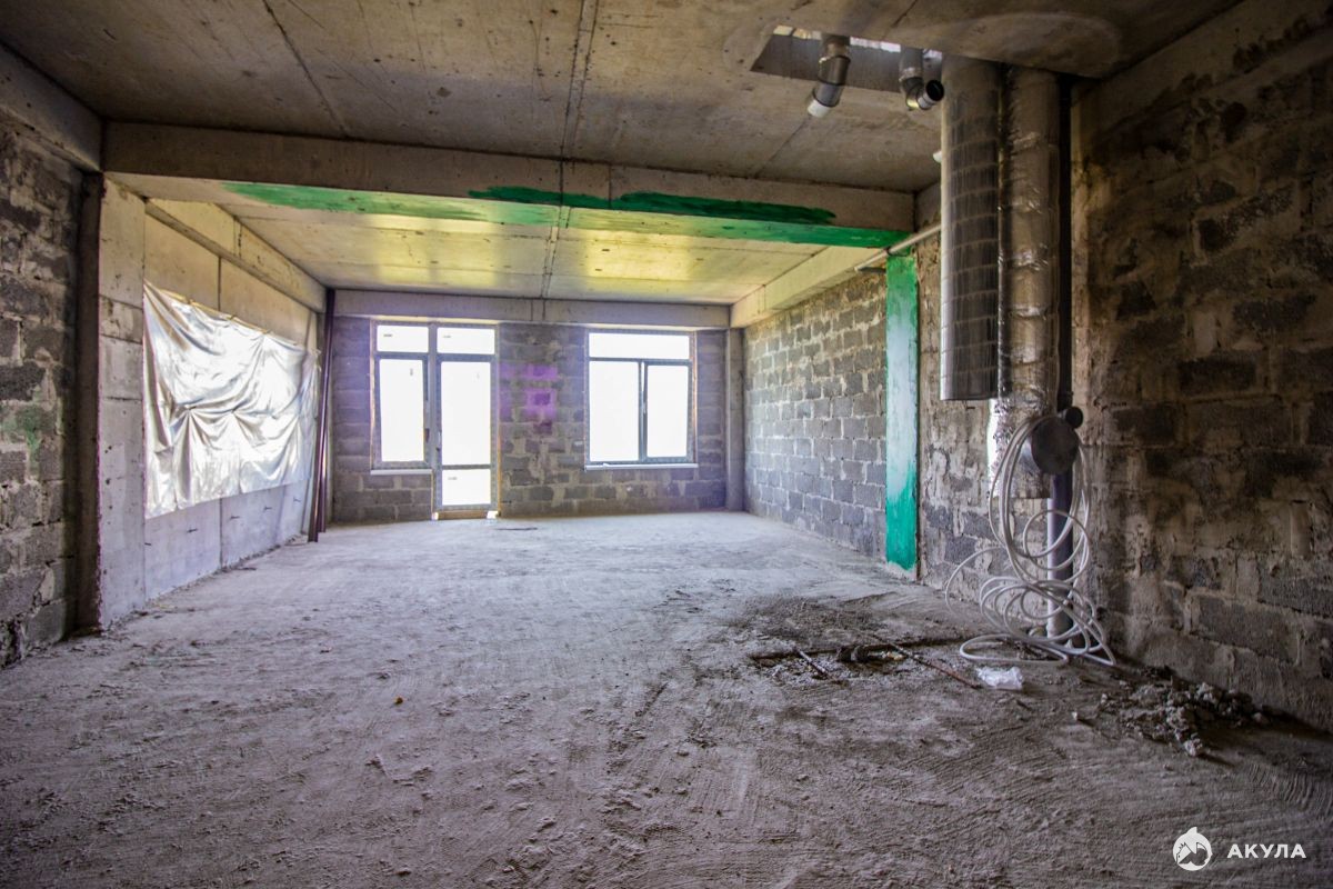 Квартира свободной планировки, без отделки. Отделка мест общего пользования: пол - керамогранит, стены - декоративная штукатурка с покраской.