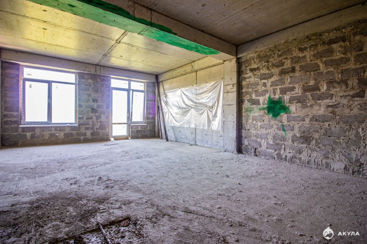 Квартира свободной планировки, без отделки. Отделка мест общего пользования: пол - керамогранит, стены - декоративная штукатурка с покраской.