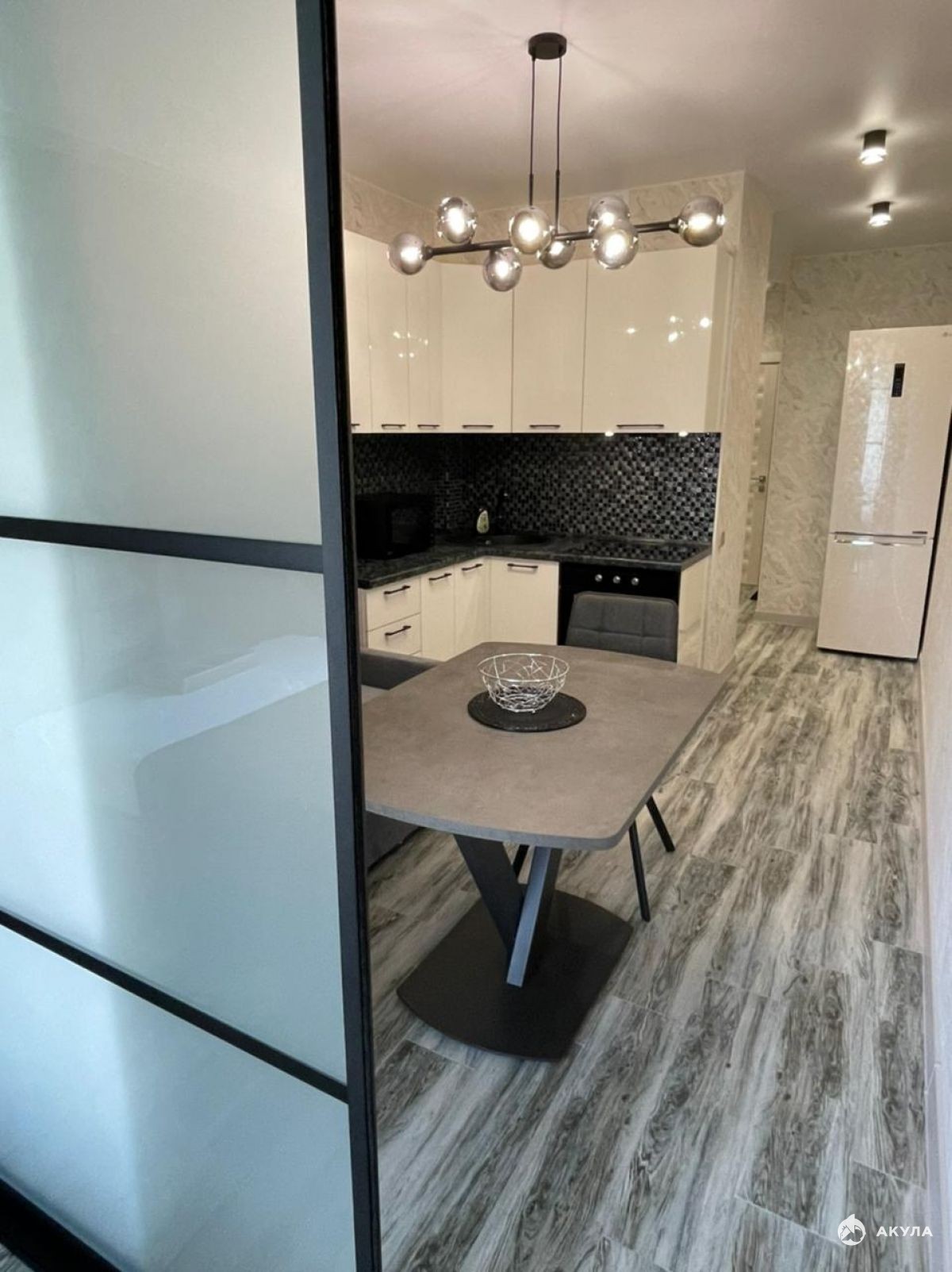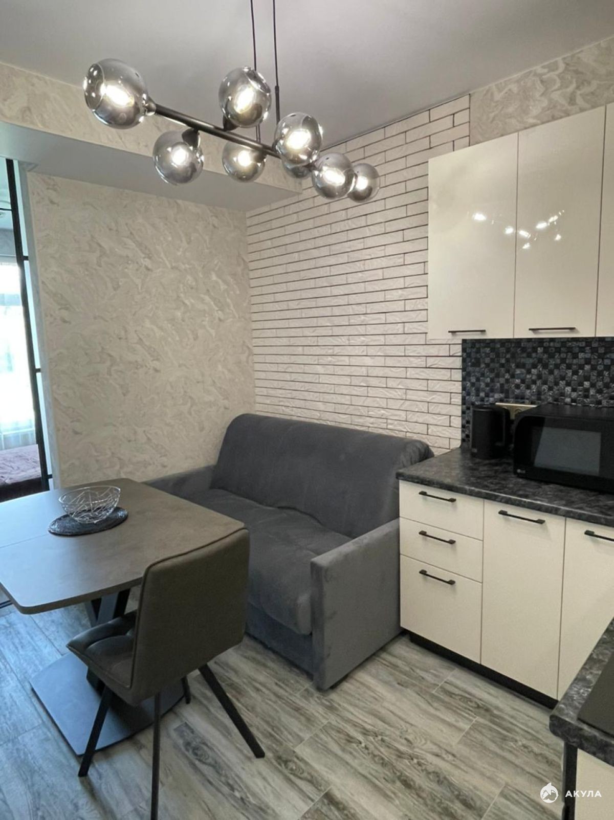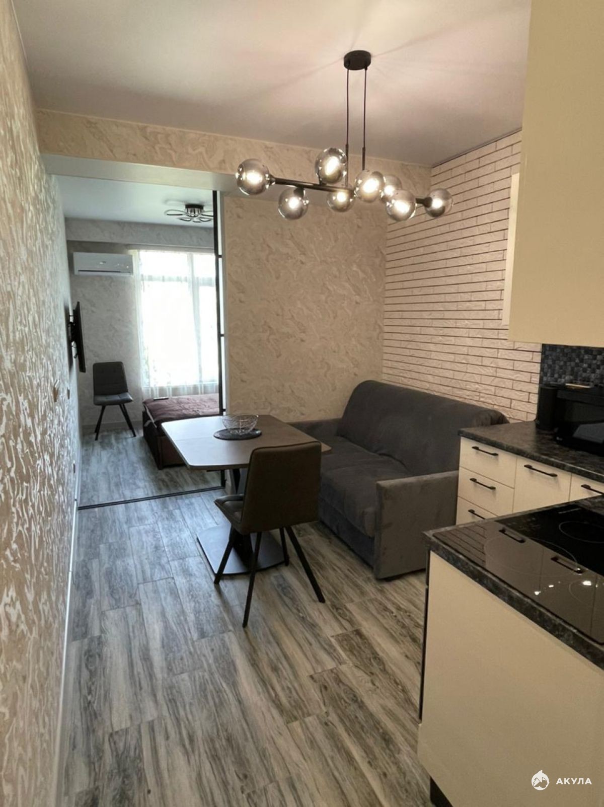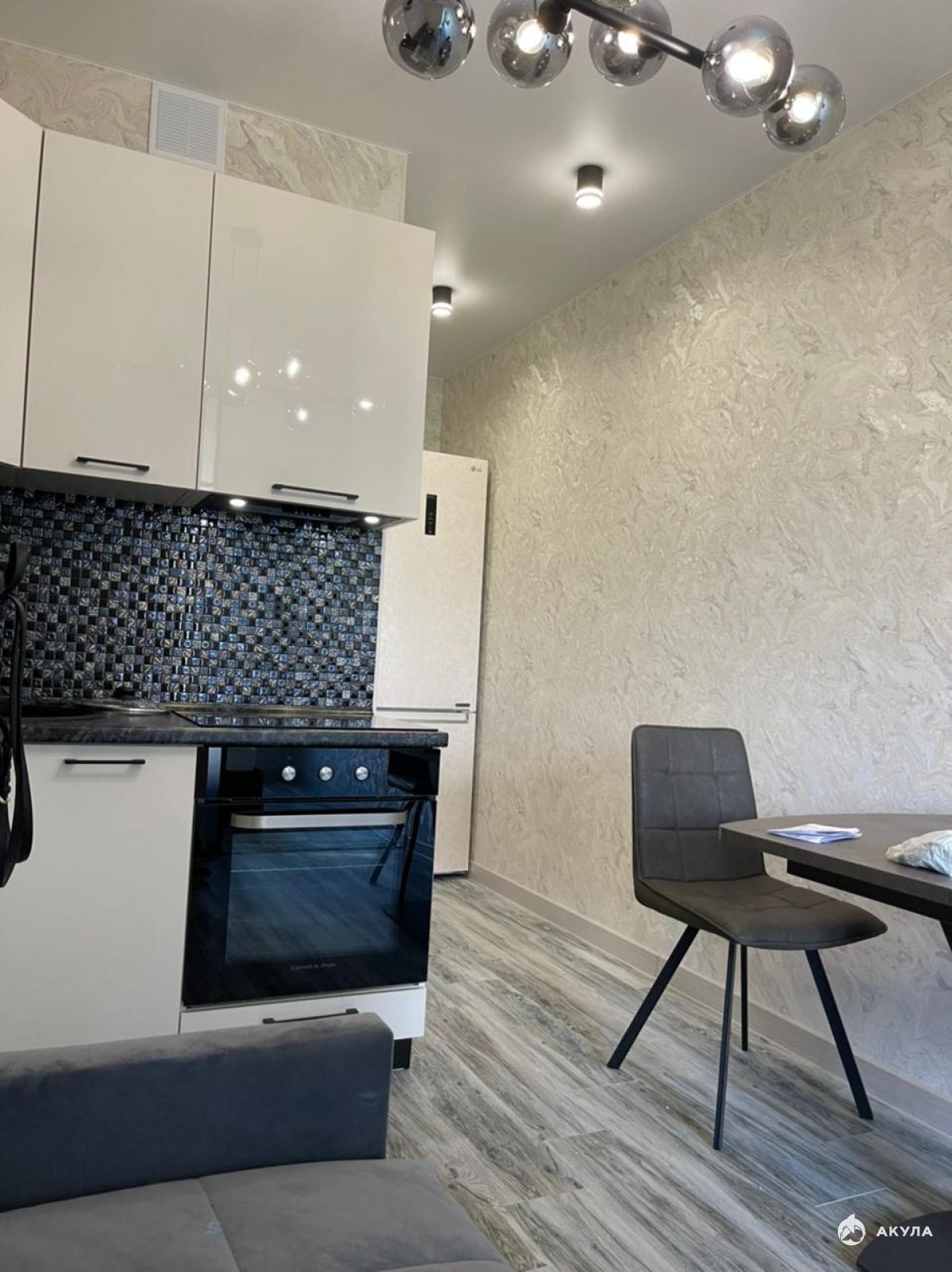 Квартира с дизайнерским ремонтом, никто не жил. Разделена на 2 зоны: спальня отделяется от кухни раздвижной перегородкой. В доме консьерж, подземный паркинг, детская площадка, магазин. Прямо возле дома остановка и вход в парк. Рядом школа, детский сад, поликлиника и т.д. Отопление от индивидуального газового котла, тёплые полы.Номер объекта: #5/550736/11901