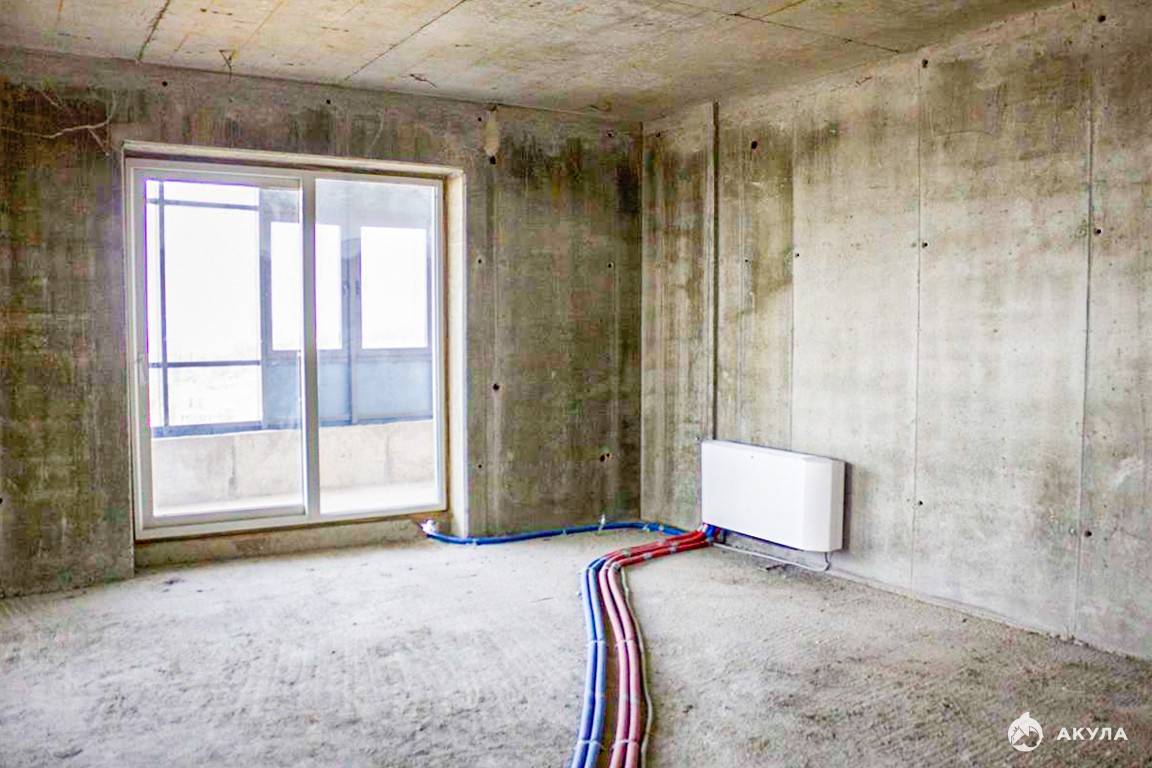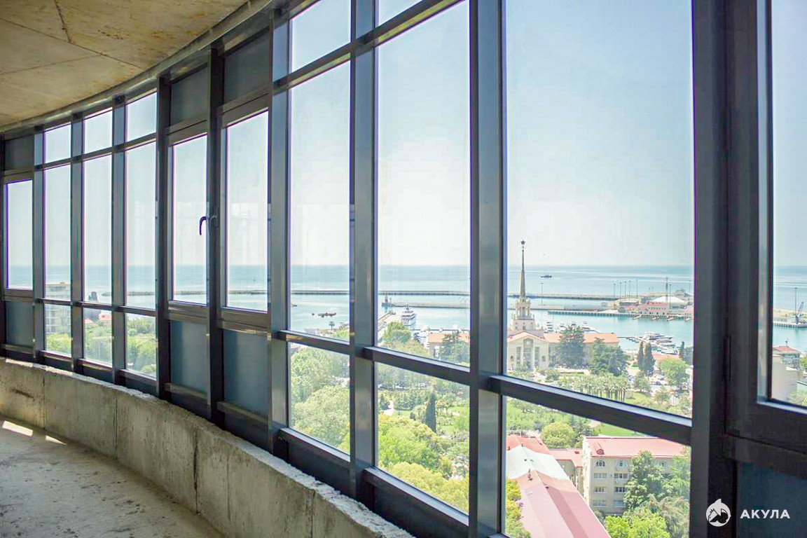 Квартира представлена без внутренней отделки. Высота потолков 3, 05 метра, установлены панорамные энергосберегающие тонированные окна.