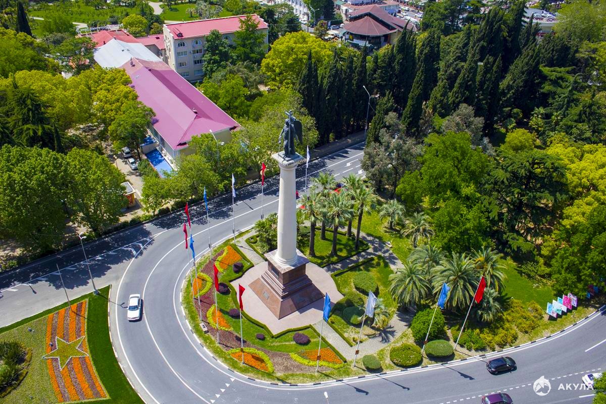 Дом расположен в самом сердце города Сочи — на пересечении Курортного проспекта и улицы Войкова.