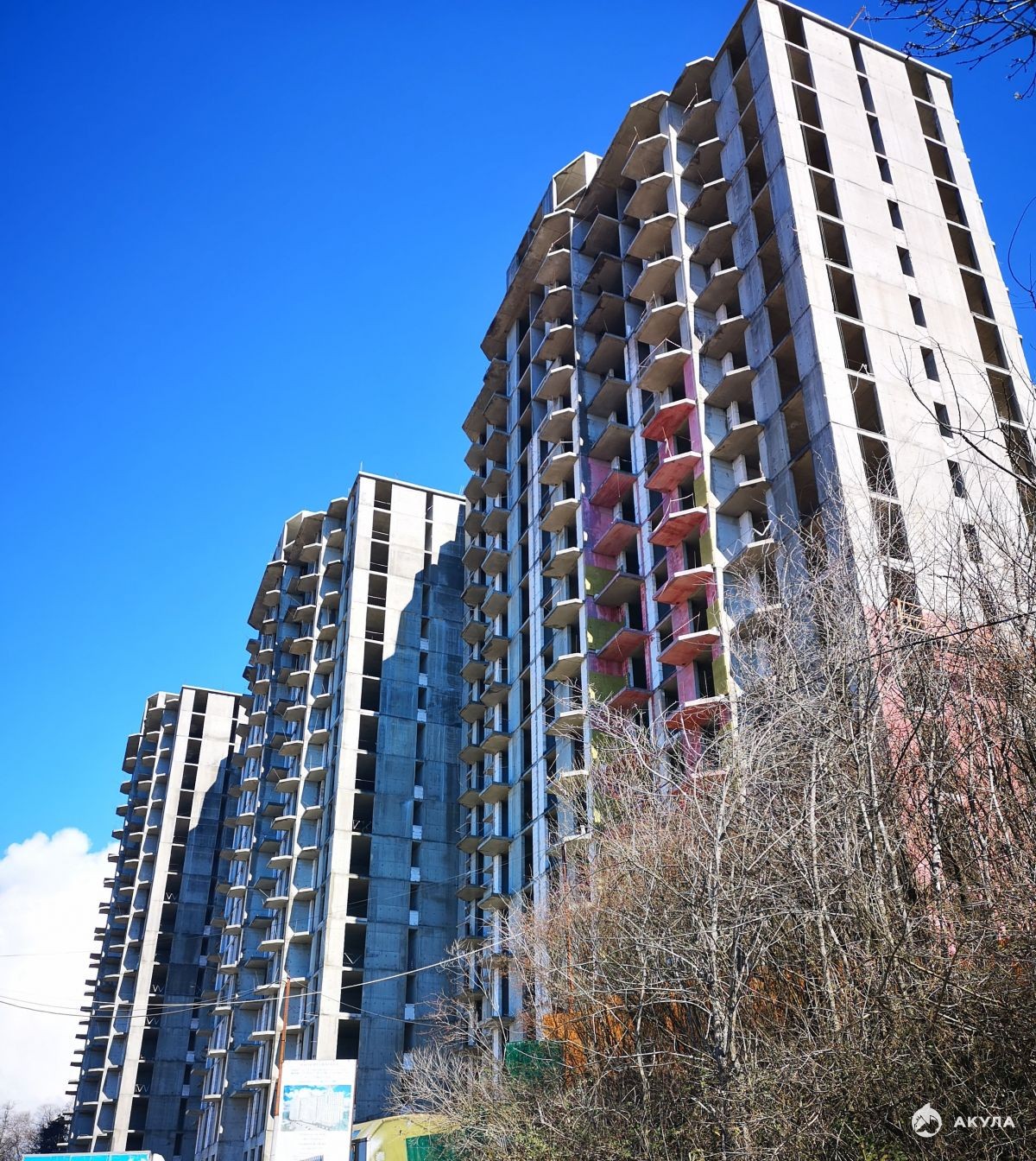 Территория комплекса огорожена, благоустроена, оборудована детская площадка, бассейн, магазин, тренажёрный зал, кафе, рестораны, так же есть две парковки (гостевая и для жителей на 120 мест).