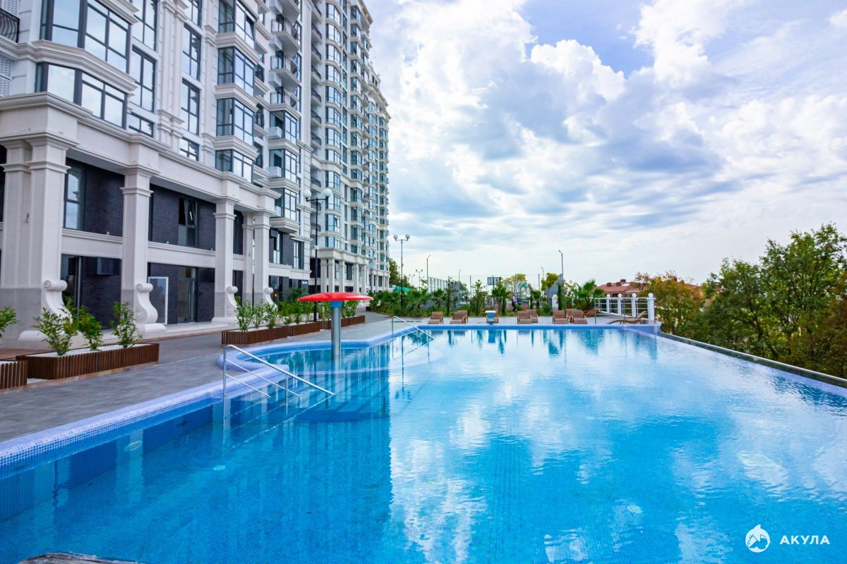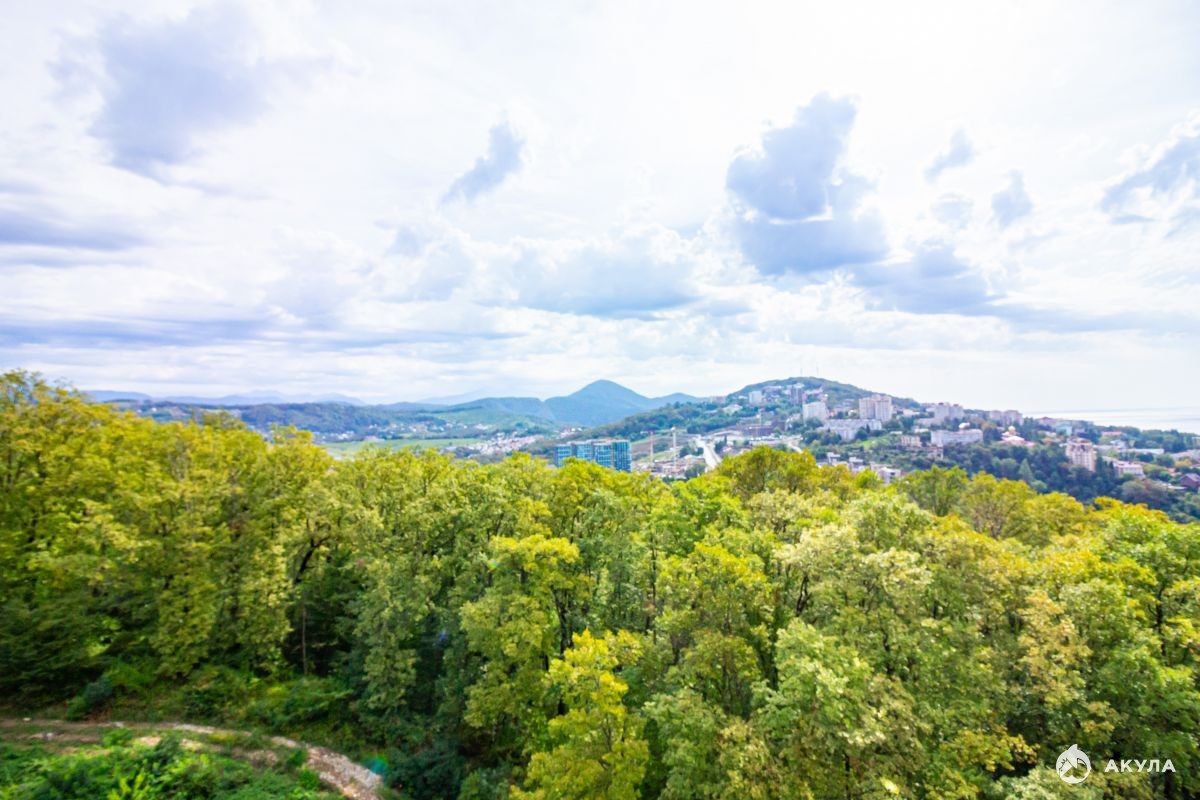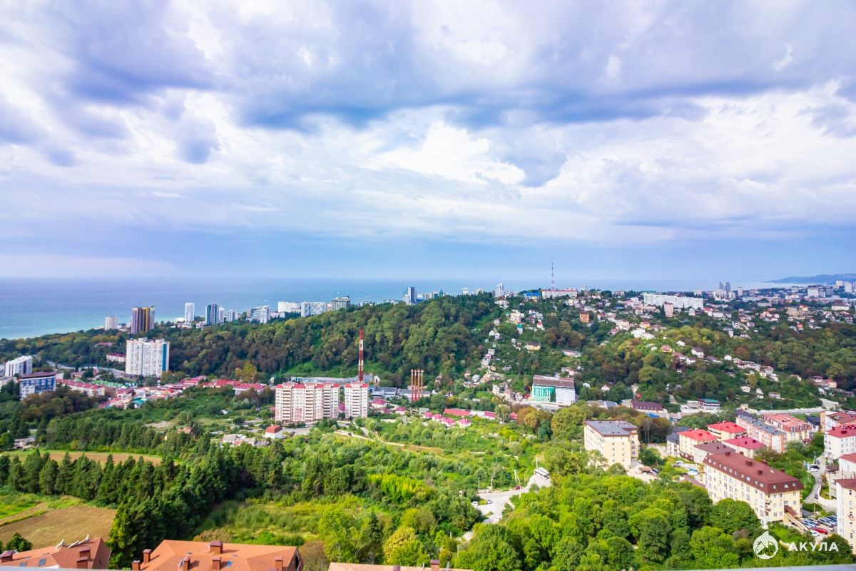 Расположение дома на склоне холма, возвышающегося над городом, создаёт великолепный панорамный вид на море, сочинский Дендрарий с одной стороны комплекса, а на зелёные холмы и горы с другой.