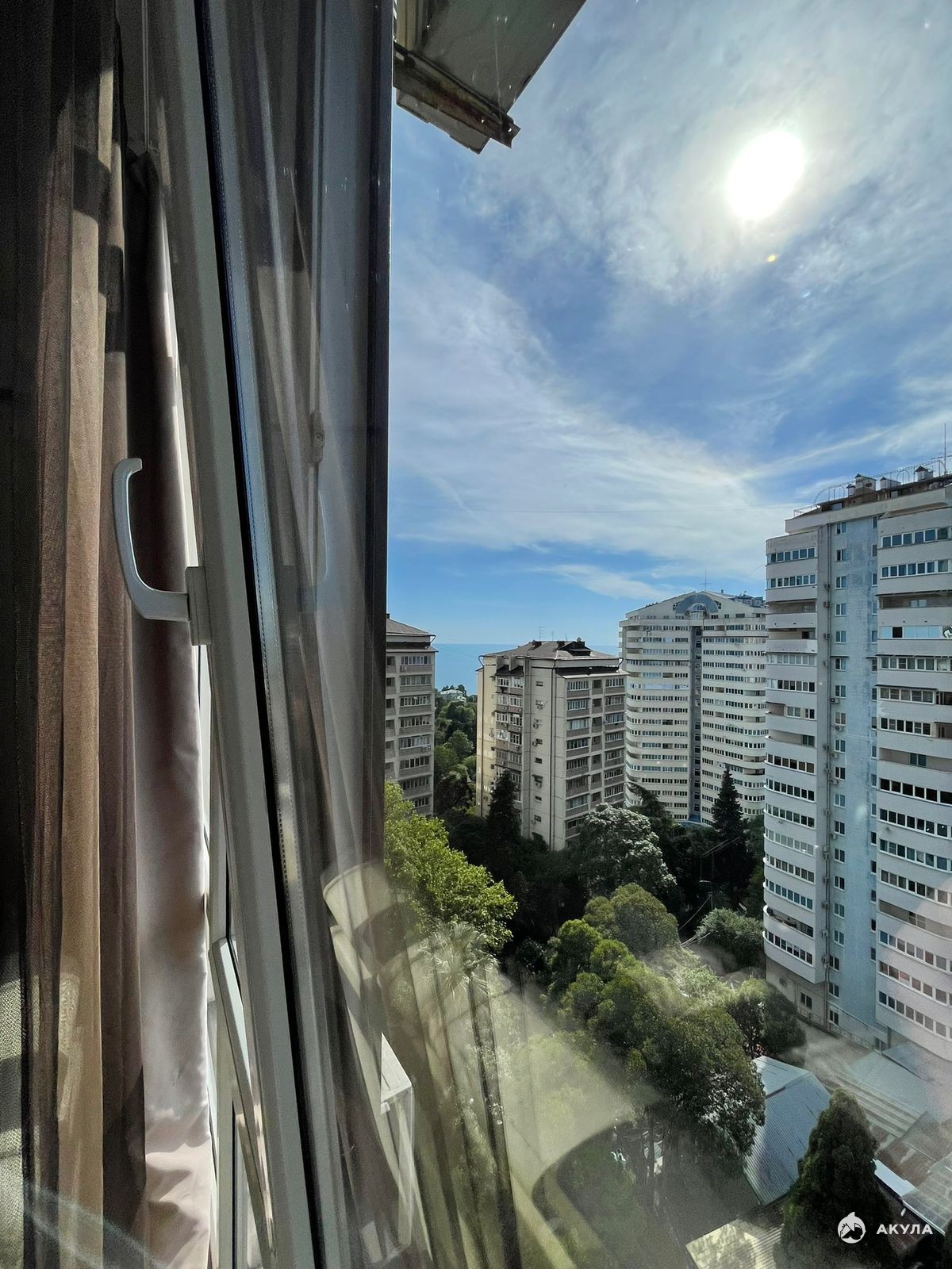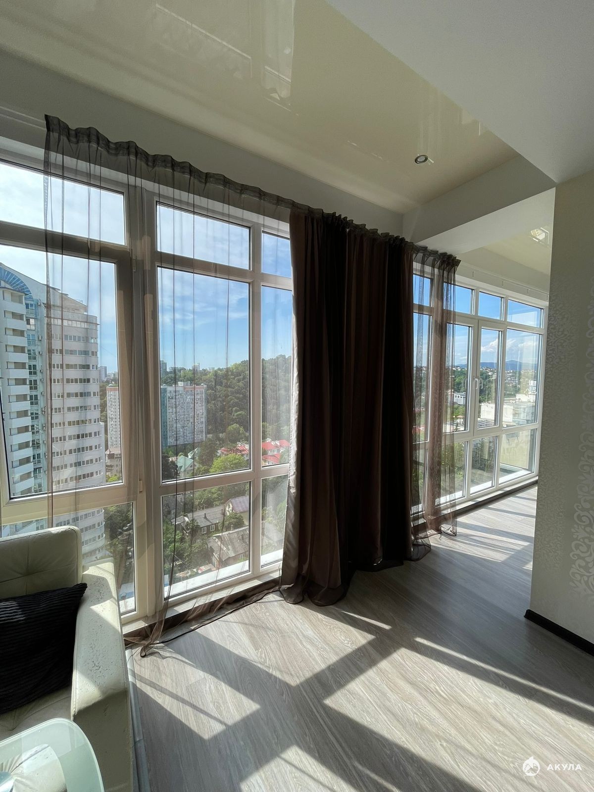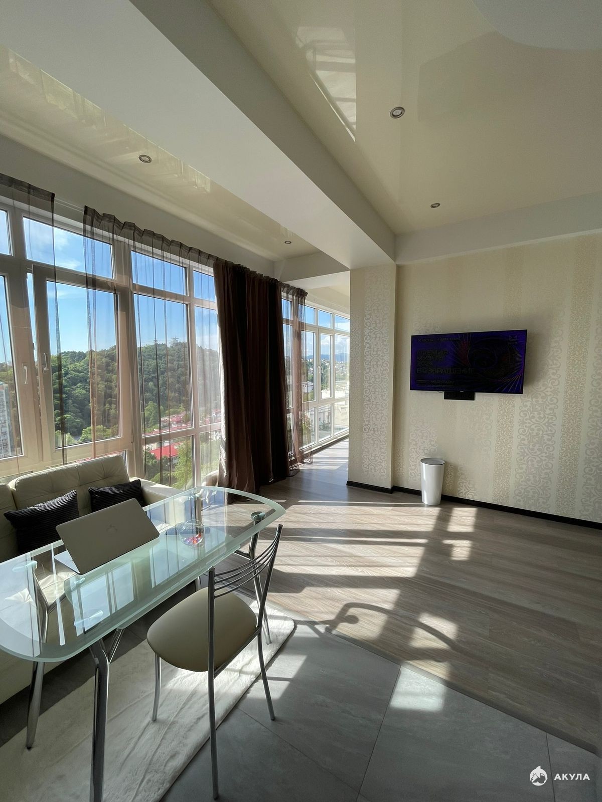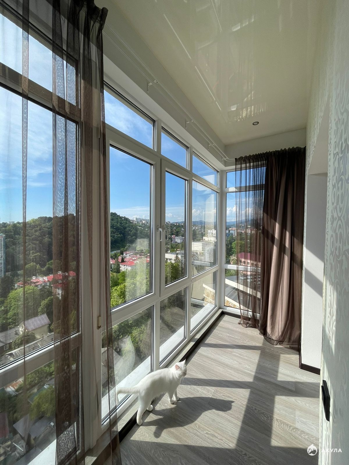 Панорамные окна по всей площади квартиры с видом на море, город, горы, светящуюся телебашню.