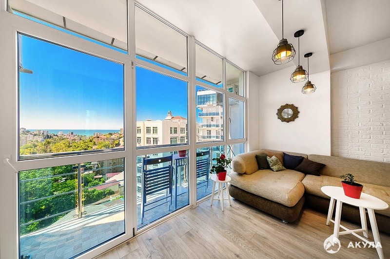 Панорамные окна выполнены из металлопрофиля, во всей квартире установлен водяной теплый пол, отопление и горячая вода от двухконтурного котла, что обеспечивает независимость в случае отключения горячей воды, а также снижает коммунальные платежи.