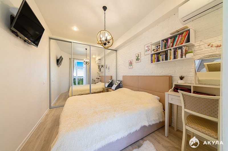 В прихожей есть большой встроенный шкаф, в спальне шкаф-гардеробная, в детской также есть шкаф и рабочая зона. В спальне новая кровать с подъемным механизмом и матрасом Аскона 160*200.