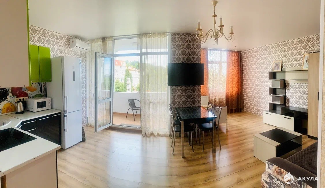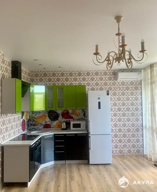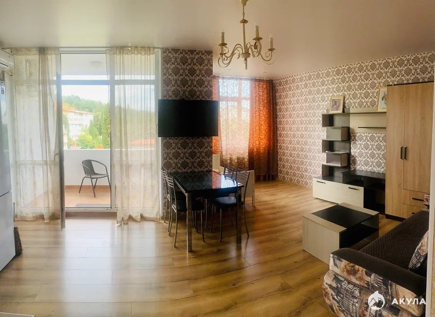 2-х к.квартира 50 кв.м. на 13/21 эт. лифт, евроремонт, мебель и бытовая техника, балкон н/з из кухни-гостиной, панорамное остекление, шикарный вид на горы. Спальня, совмещенный санузел.