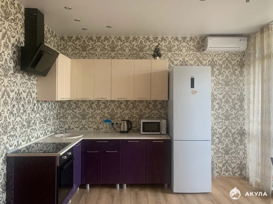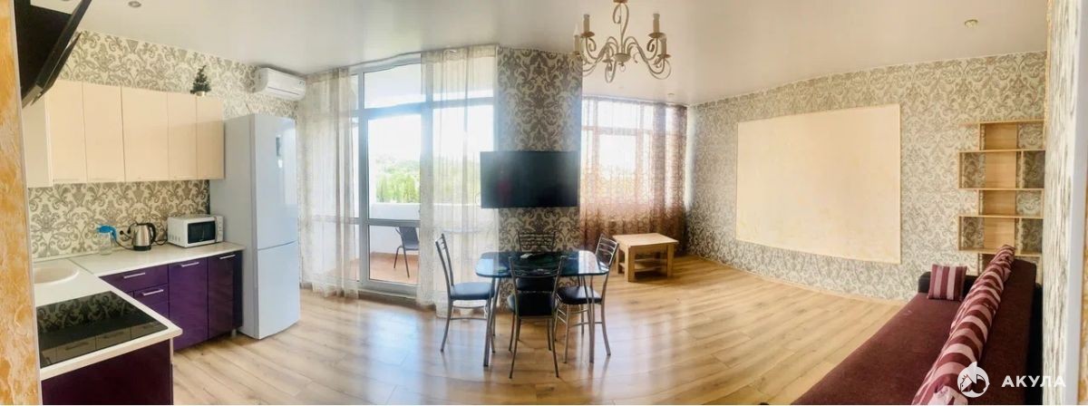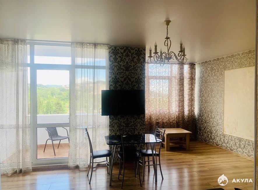 2-х к.квартира 50 кв.м. на 13/21эт. лифт, евроремонт, мебель и бытовая техника, балкон н/з из кухни-гостиной, панорамное остекление, шикарный вид на горы. Спальня, совмещенный санузел.