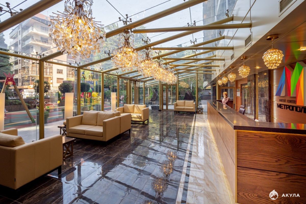 Огромным преимуществом комплекса является вместительная подземная парковка, эксплуатируемая кровля, на которой будет расположен бассейн и спортивная площадка, зона отдыха. На закрытой охраняемой территории предусмотрены детская площадка, уличные тренажеры, гостевой паркинг. На первом этаже комплекса есть зона ожидания для гостей и жильцов ЖК «Метрополь», а также пост консьерж-сервиса.