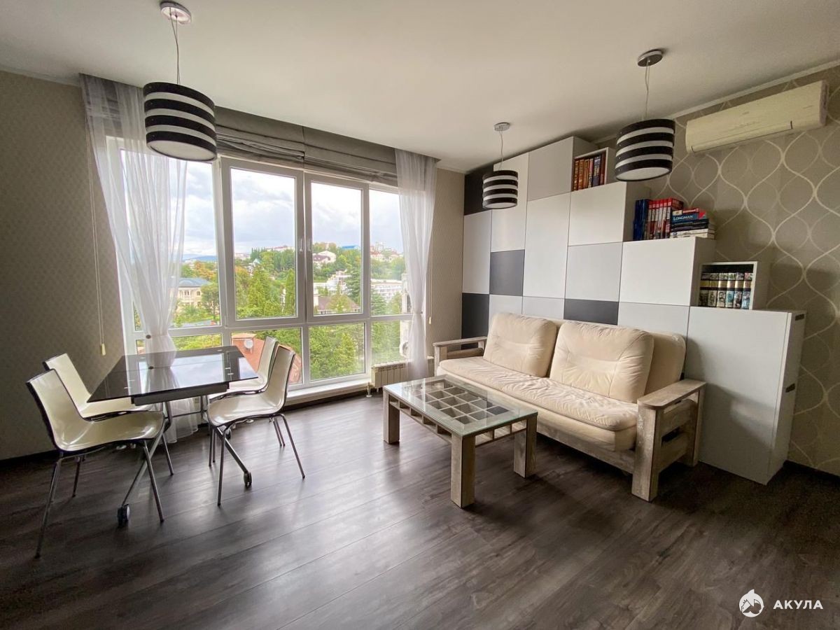 Продается квартира в ЖК "Раевский" - многоквартирный жилой комплекс, расположенный в микрорайоне Светлана, рядом с парком "Дендрарий", супермаркетом "Патэрсон", санаториями "Москва" и "Светлана". Квартира с ремонтом и мебелью. Есть все для комфортного проживания. Море в шаговой доступности. Отделка фасадов - сочетание плоскостей стен, отштукатуренных декоративной штукатуркой, и массивов панорамного остекления.