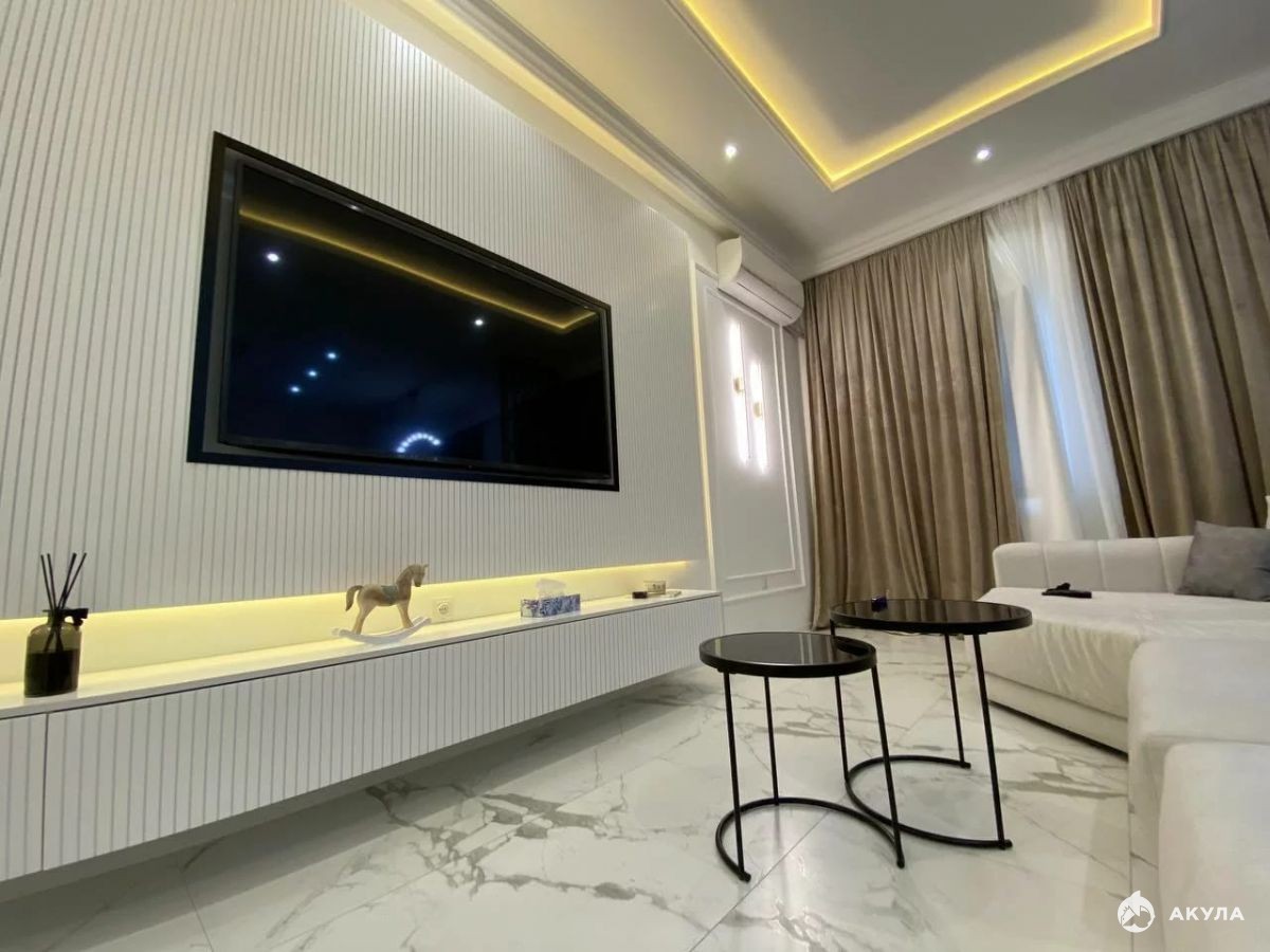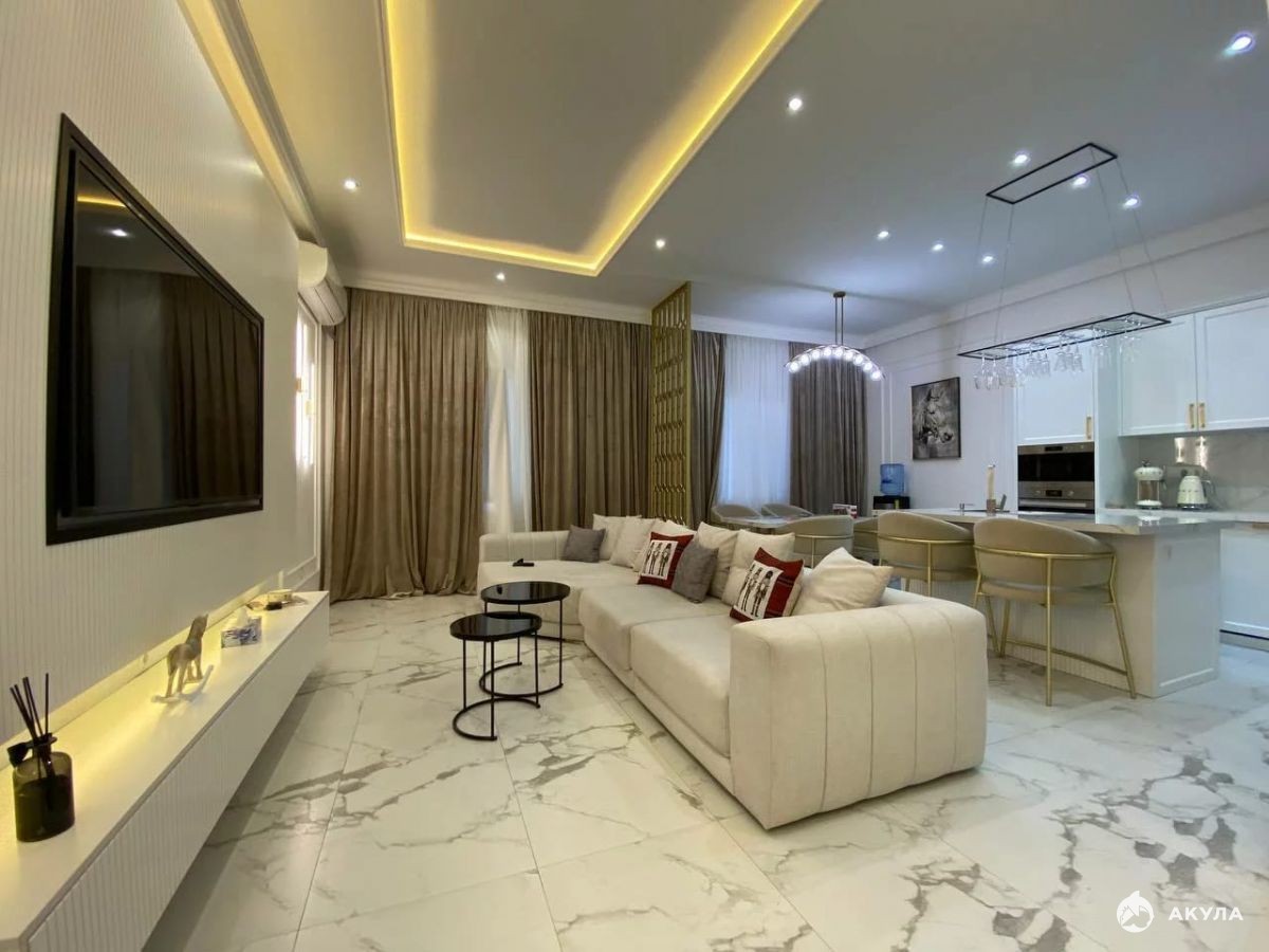 В квартире выполнен дизайнерский ремонт с использованием только лучших премиальных материалов. Мебель и встроенная техника производства Италии, Германии.