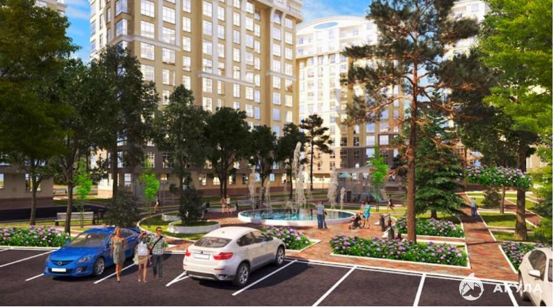 У комплекса большая, закрытая территория, огромная детская площадка, фонтан, зоны отдыха, паркинг.