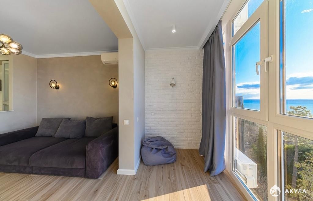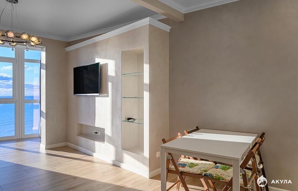 Продам квартиру в доме бизнес-класса. Первая береговая линия. Большая кухня-гостиная, изолированная комната, гардеробная комната, совмещённый санузел, балкон. Тёплые полы по зонам, панорамное остекление, вид на море, все коммуникации центральные.