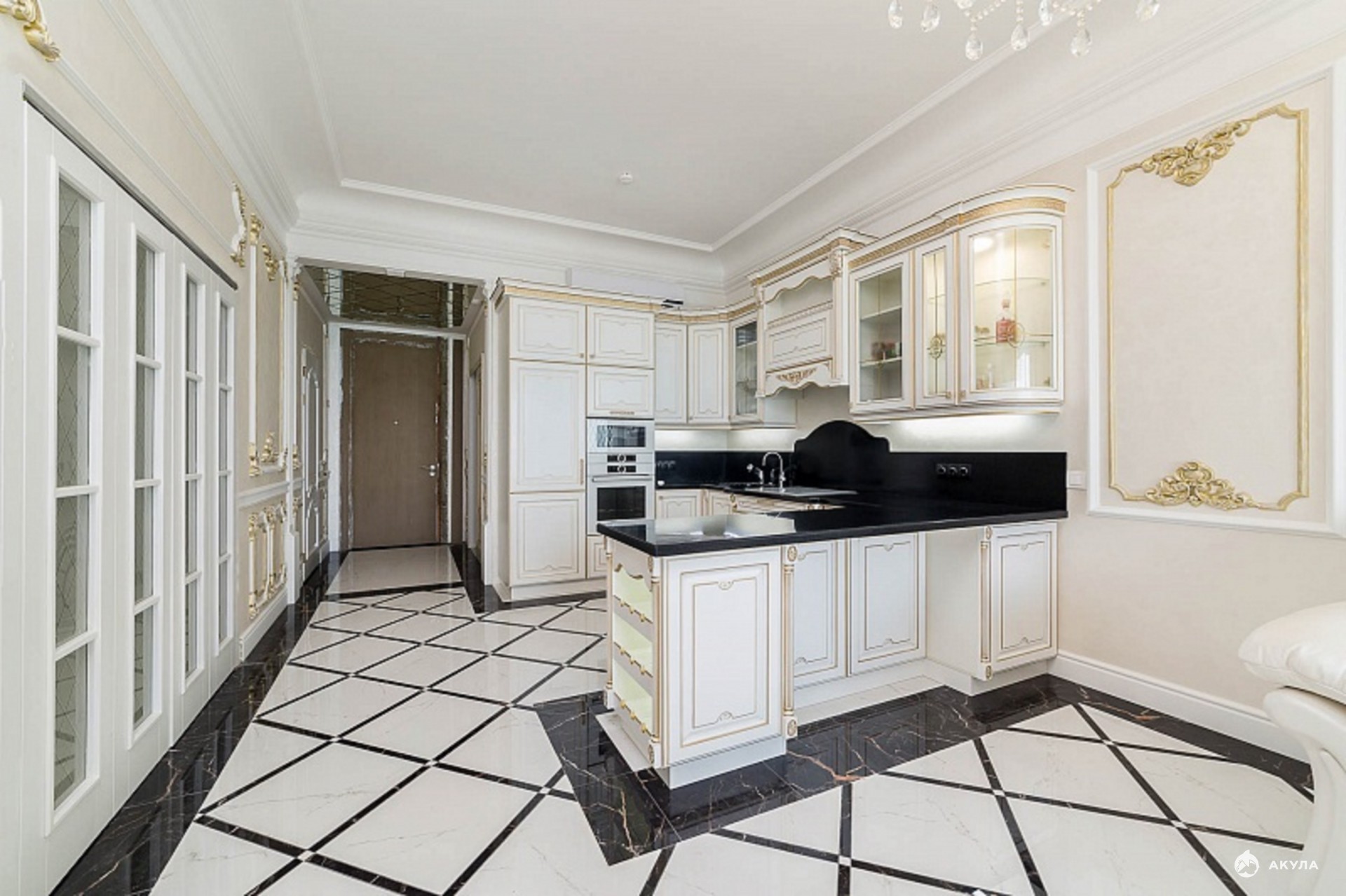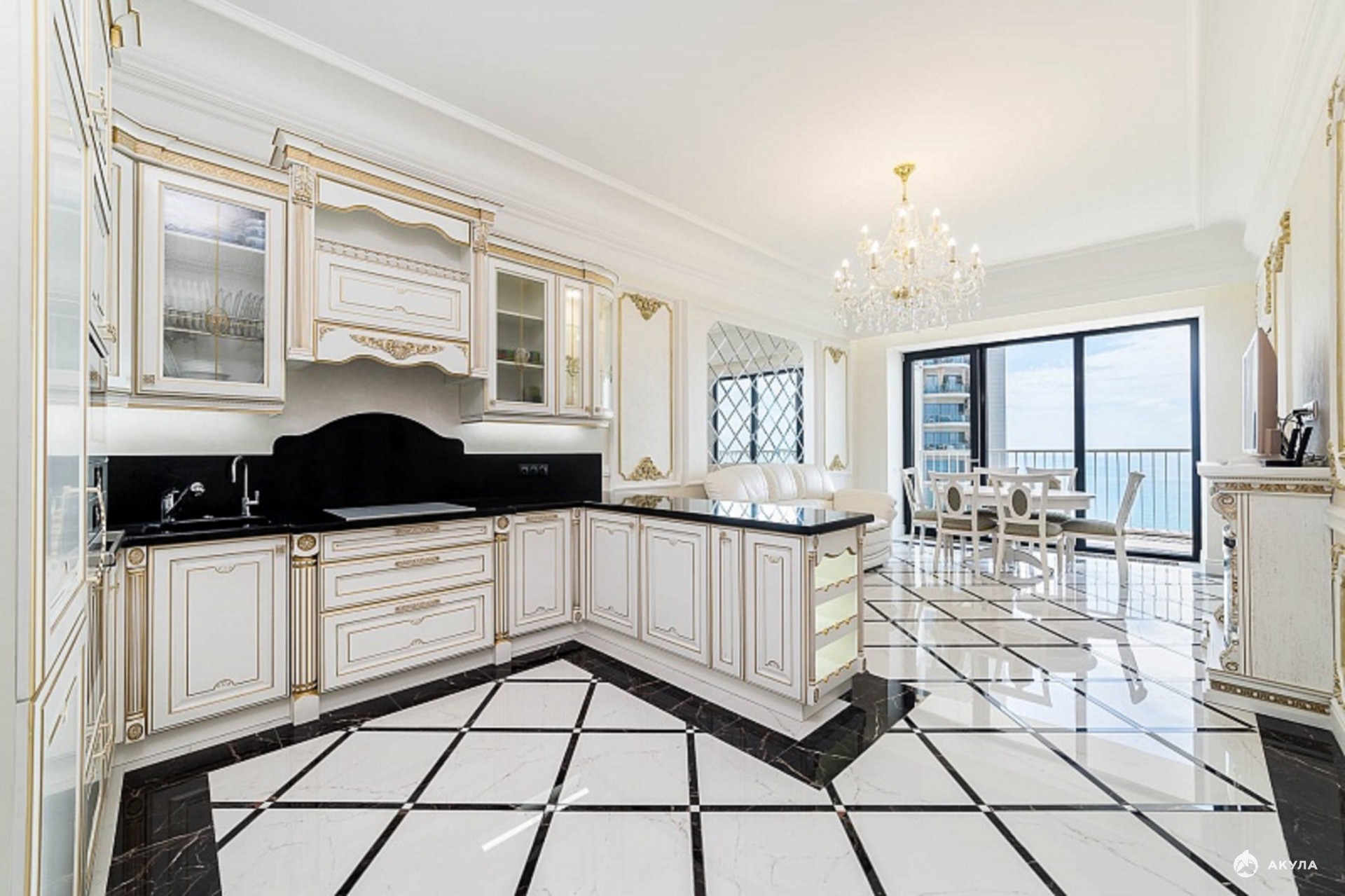 Квартира оснащена дорогой итальянской мебелью, установлена встроенная немецкая техника.