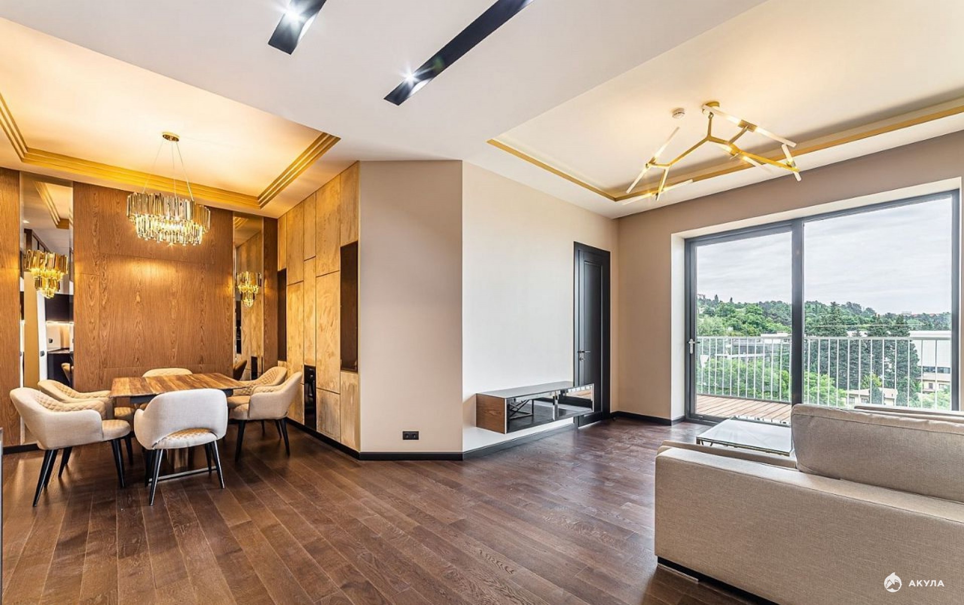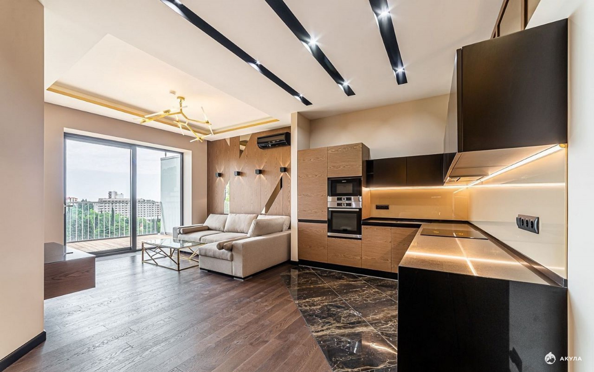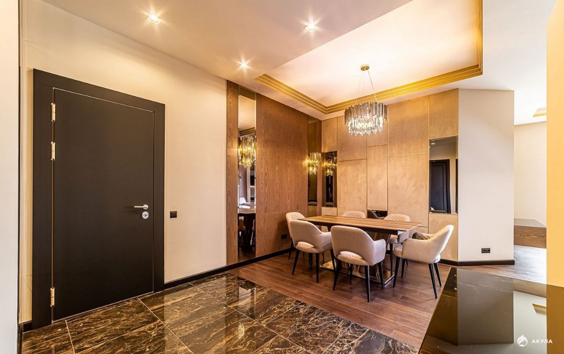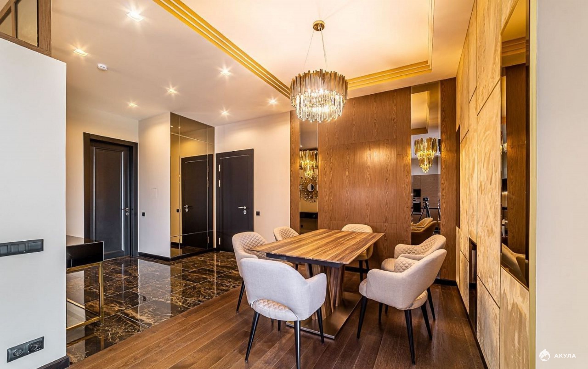 В апартаменте выполнен дизайнерский ремонт, премиальные материалы и высокое качество самой технологии отделочных работ. Выделена одна спальная комната, объединенная кухня-гостиная, совмещенный санузел и гардеробная комната.