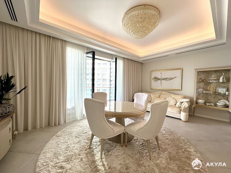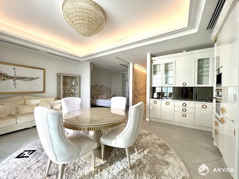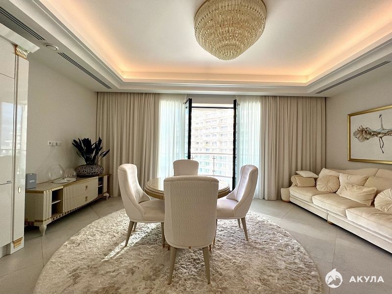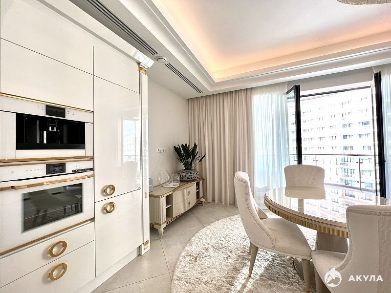В квартире выполнен дорогостоящий дизайнерский ремонт, мебель и техника от именитых брендов, по всей квартире теплый пол, панорамное остекление с красивым видом на море. Общая площадь квартиры составляет 96м2, распланирована в просторную кухню гостиную с продуманной зоной готовки, две спальные комнаты, два санузла и большая терраса. В квартире остается вся мебель и техника.