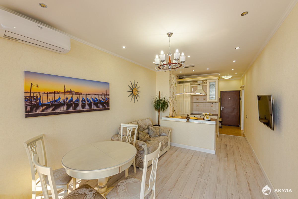 Предлагается к продаже новый пентхаус с дизайнерским ремонтом и прекрасным видом на море в доме бизнес- класса ЖК Морская Симфония. Шаговая доступность к морю и лучших пляжей Чермного моря, и важных объектов деловой и культурной сферы – все это несомненно большой плюс расположения дома. Самодостаточная инфраструктура дома: круглосуточная охрана и высокий уровень внутреннего сервиса. Распланирована в две спальные комнаты, кухню-гостиную и небольшую террасу. Вход на этаж этой квартиры возможен только по чипу в лифте. К данной квартире закреплено свое парковочное место в подземном паркинге.