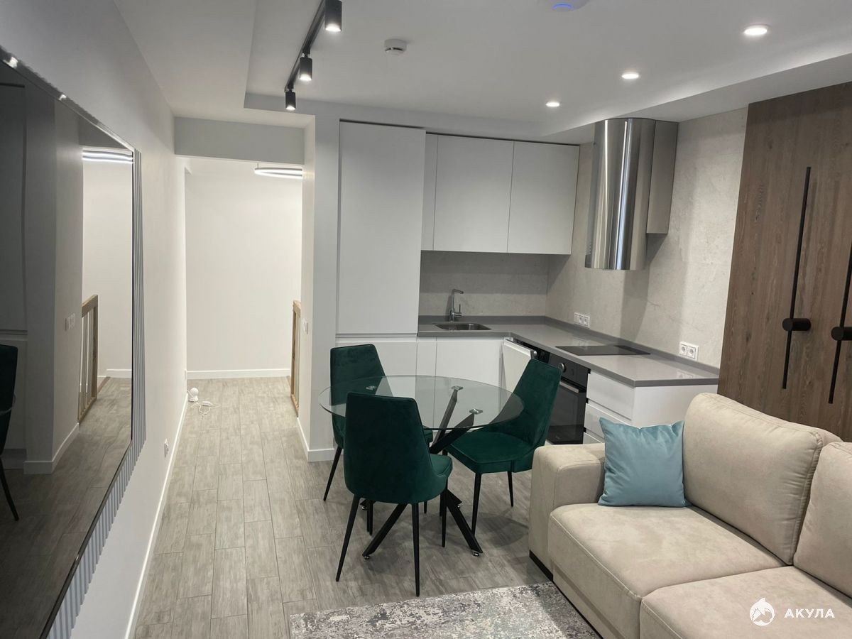 Стильный ремонт, просторная планировка выполнена в два яруса .
