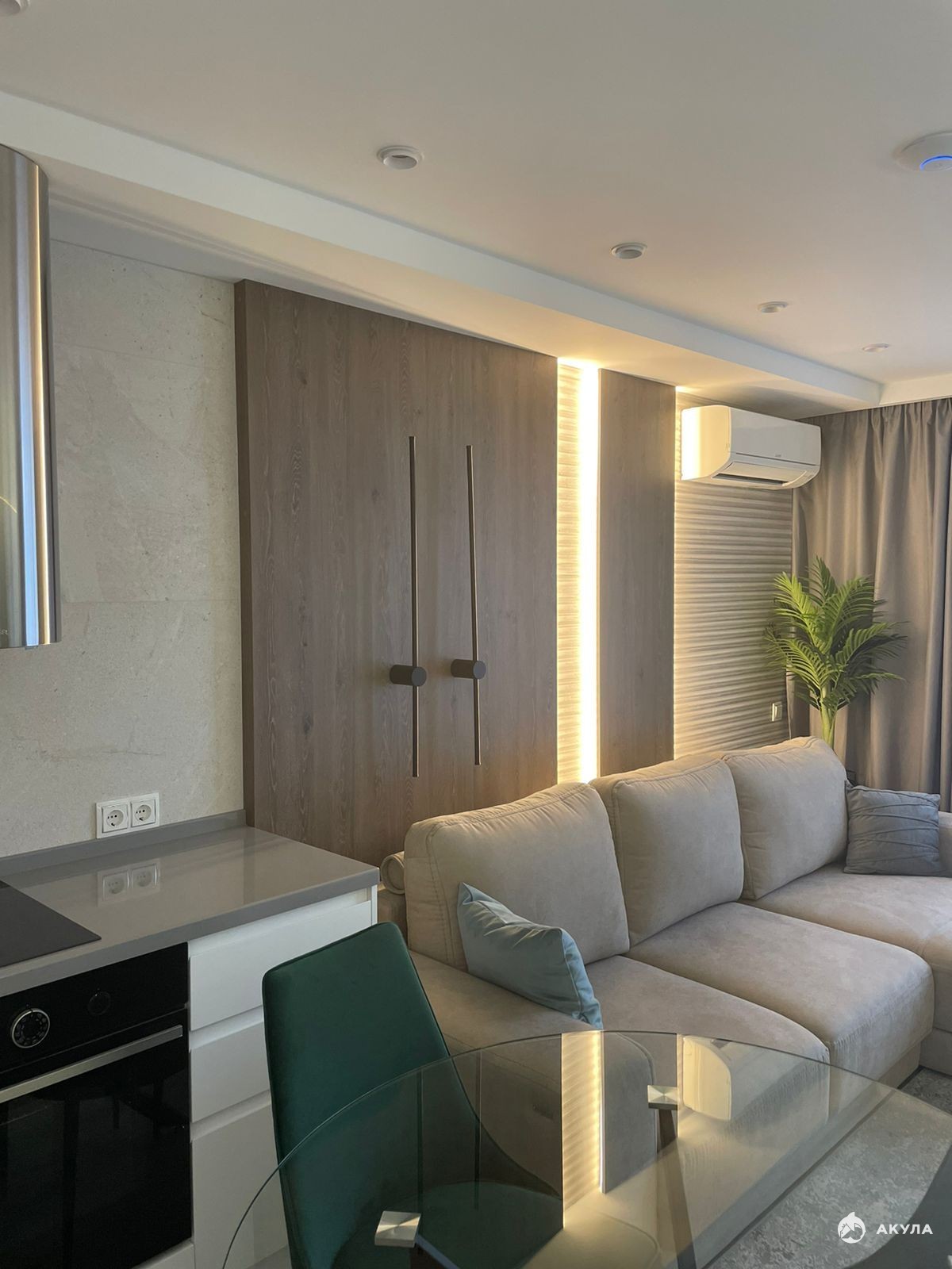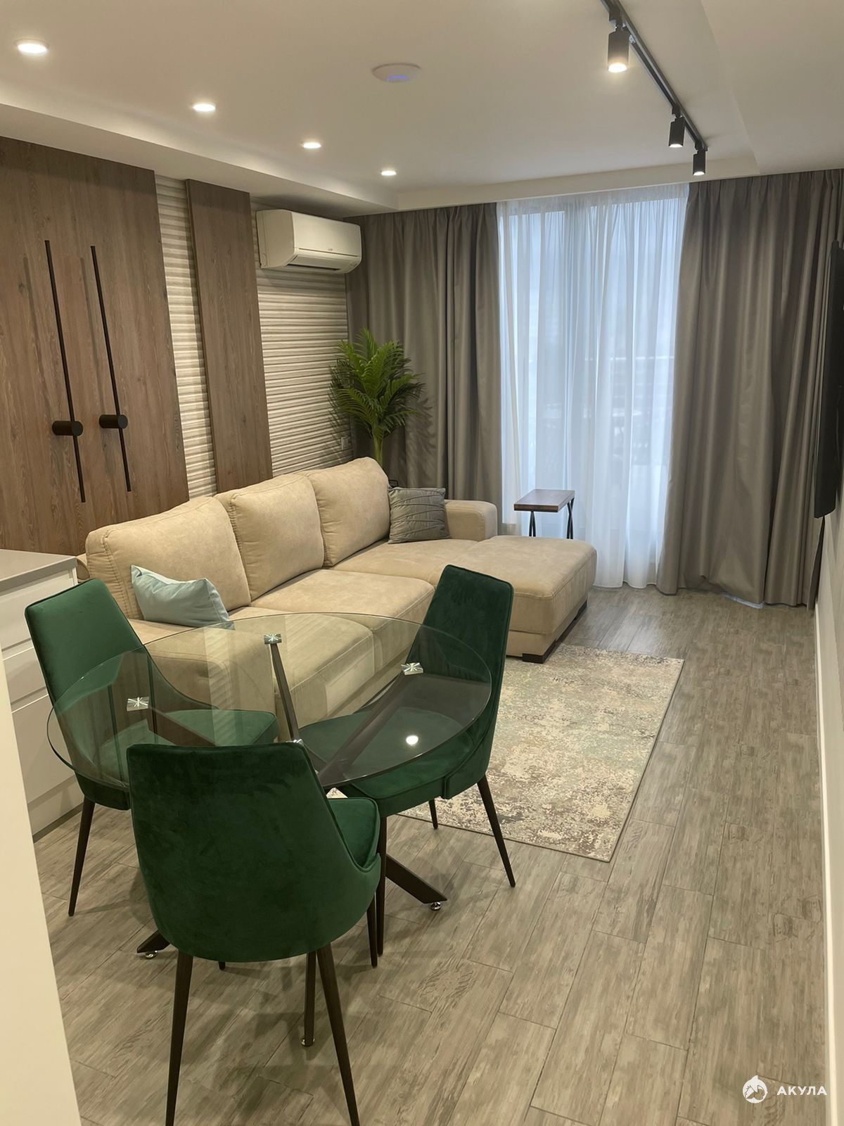 Две террасы, одна с автоматической выдвижной маркизой. Готовые апартаменты "Меридиан Дагомыс" с видом на сад расположены в курортном поселке Дагомыс .