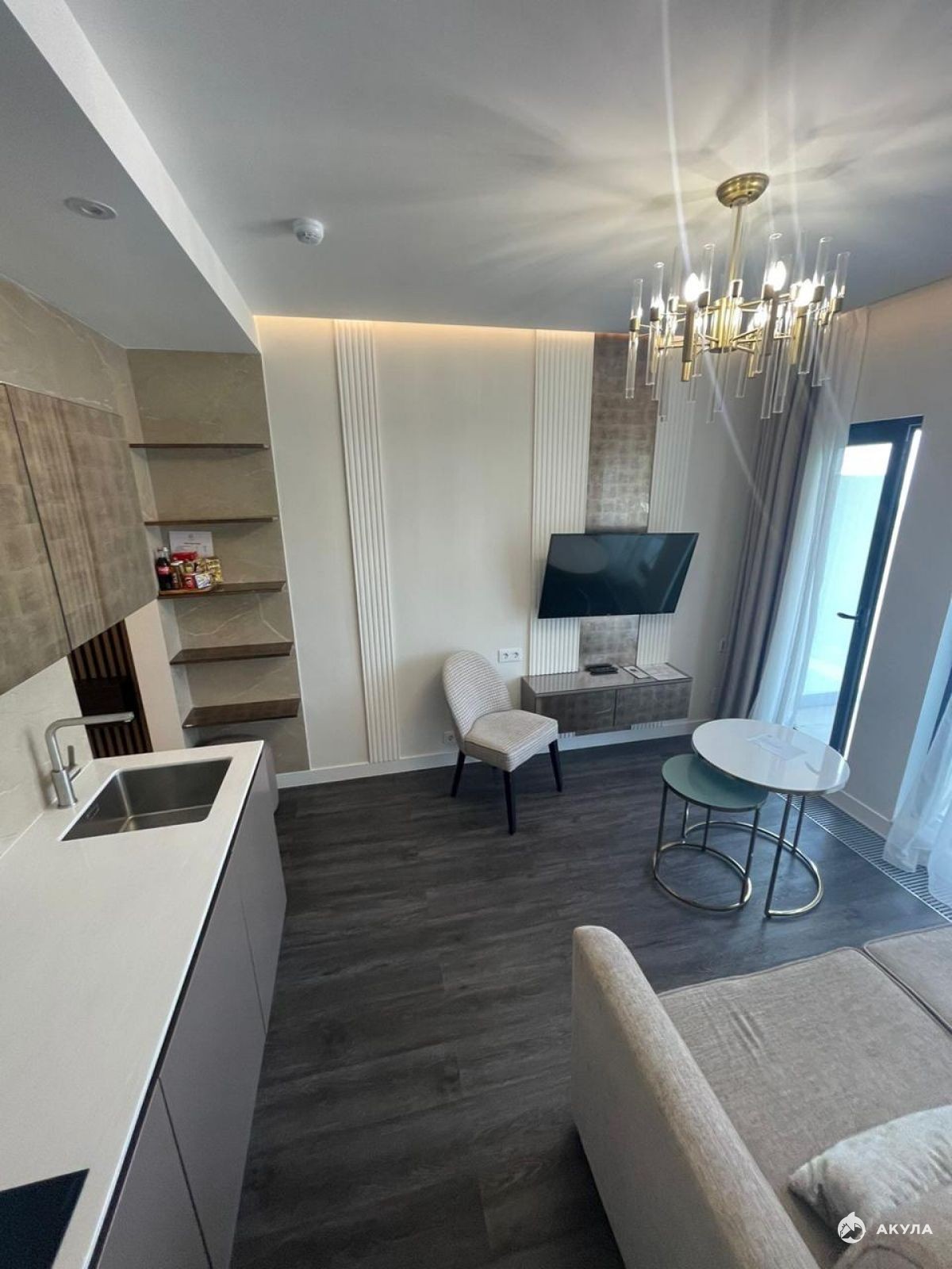 Продажа уютного апартамента включающий в себя: спальную комнату, просторную кухню- гостиную, прихожую, ванную комнату и просторный балкон с видом на море!