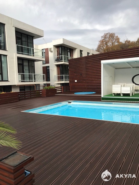 Инфраструктура комплекса: теннисный корт, игровая зона для детей, 2 бассейна, зона отдыха и барбекю, шезлонги, зонтики, лежаки, летний душ (рядом с аэрарием), свободный придомовой паркинг, ландшафтный дизайн, магазин в 100 метрах, остановка автобуса в 50 метрах.