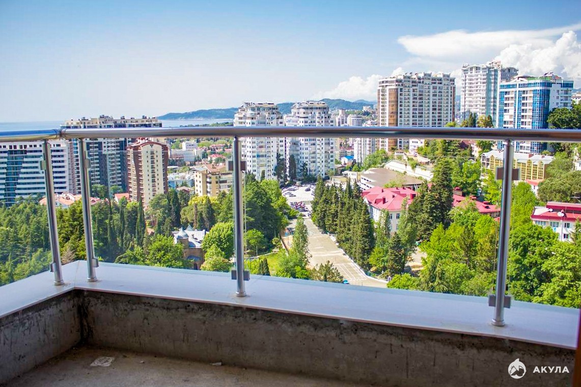 Площадь квартиры 83 квадратных метра. Квартира без ремонта, с витражным остеклением. Из окон, к слову, открывается очень хороший вид на город, горы и море!