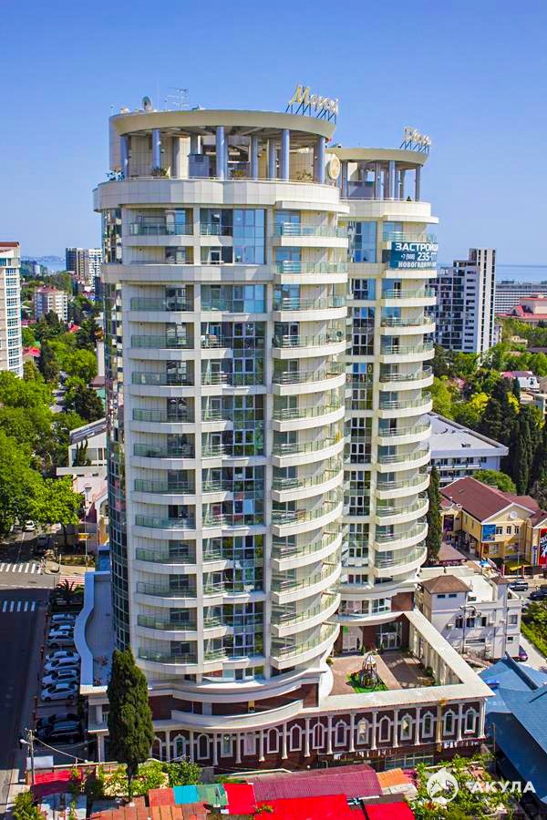 ЖК "Морской Дворец" - это монолитный 16-этажный комплекс оригинальной формы, состоящий из двух идентичных башен, находится на возвышенности, тем самым величественно паря над побережьем моря. Эту эксклюзивную новостройку можно смело отнести к одному из самых фешенебельных и престижных комплексов Сочи! Роскошный дворцовый стиль был создан и спроектирован известными дизайнерами, приятным дополнением ко всему дворцовому лоску стоит отметить бассейн, сауну, хамам, спортзал, которыми в любое время могут пользоваться жители дома. Также стоит отметить эксплуатируемую крышу, оснащенную всем необходимым для комфортного отдыха на ней.