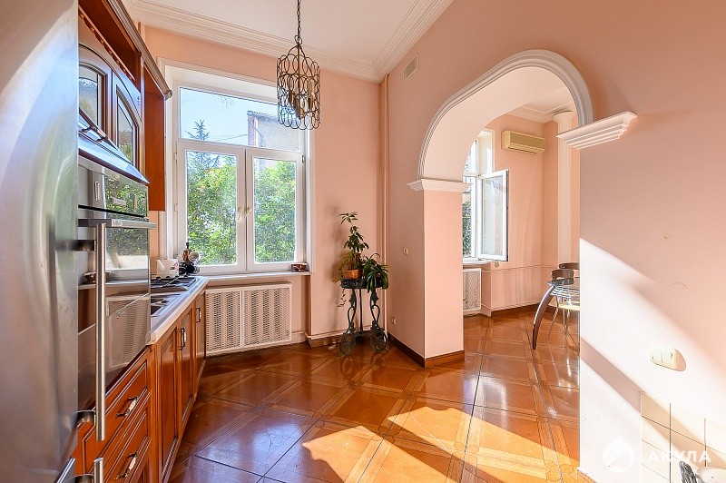 Дом расположен в локации Золотого треугольника Сочи. В пешей доступности рестораны и кафе, магазины, парки и скверы.
