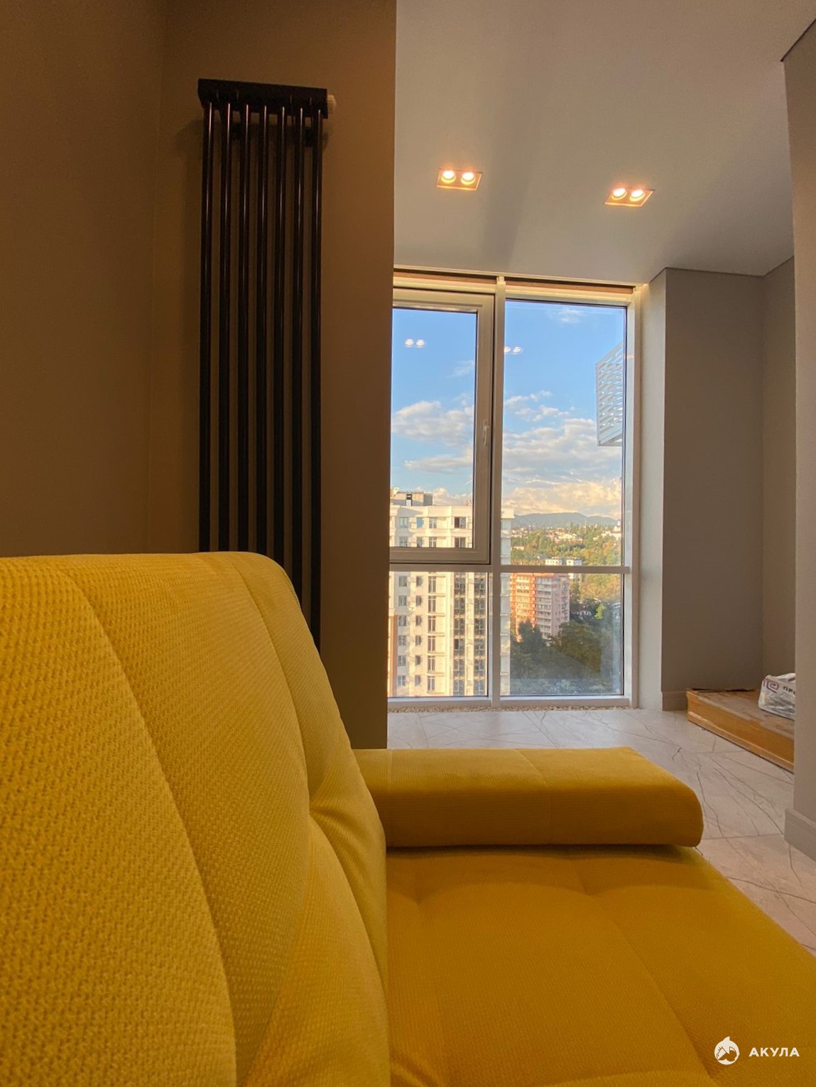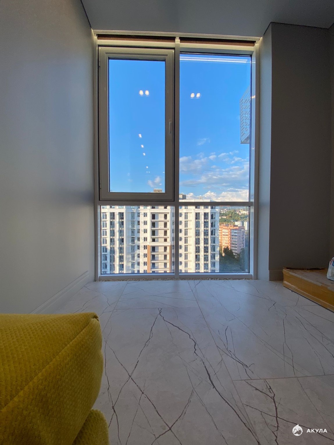 Панорамное остекление. Высокий этаж. Вид во двор.