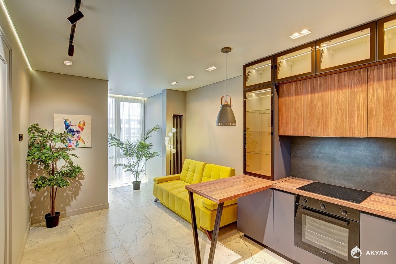 Квартира в Альпийском квартале. Кухня-гостиная и спальня, жилая лоджия, совмещенный санузел. Дизайнерский ремонт, полностью укомплектована мебелью и техникой. Никто не проживал!