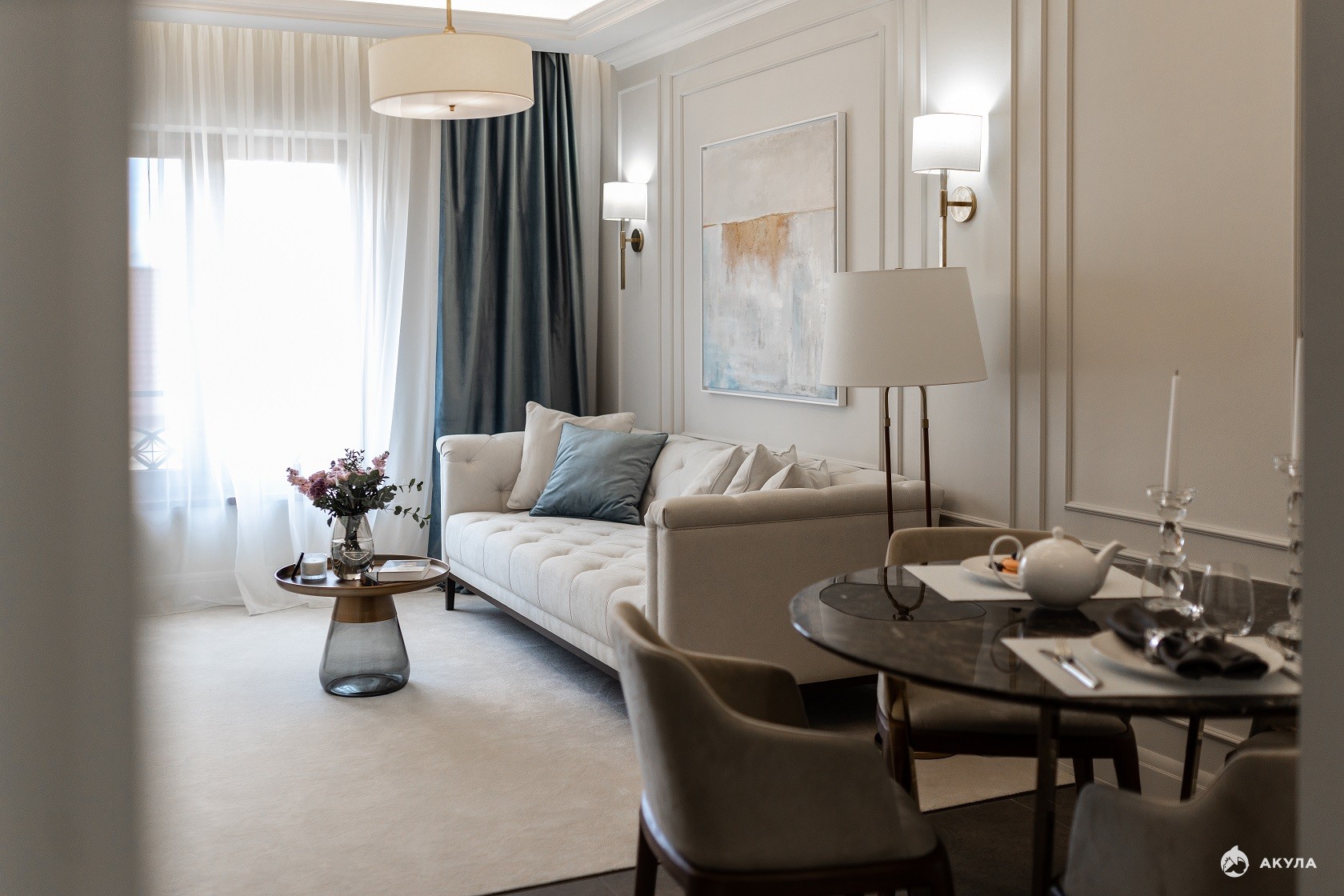 Апартамент спланирован в просторную гостиную и выделенную спальню!