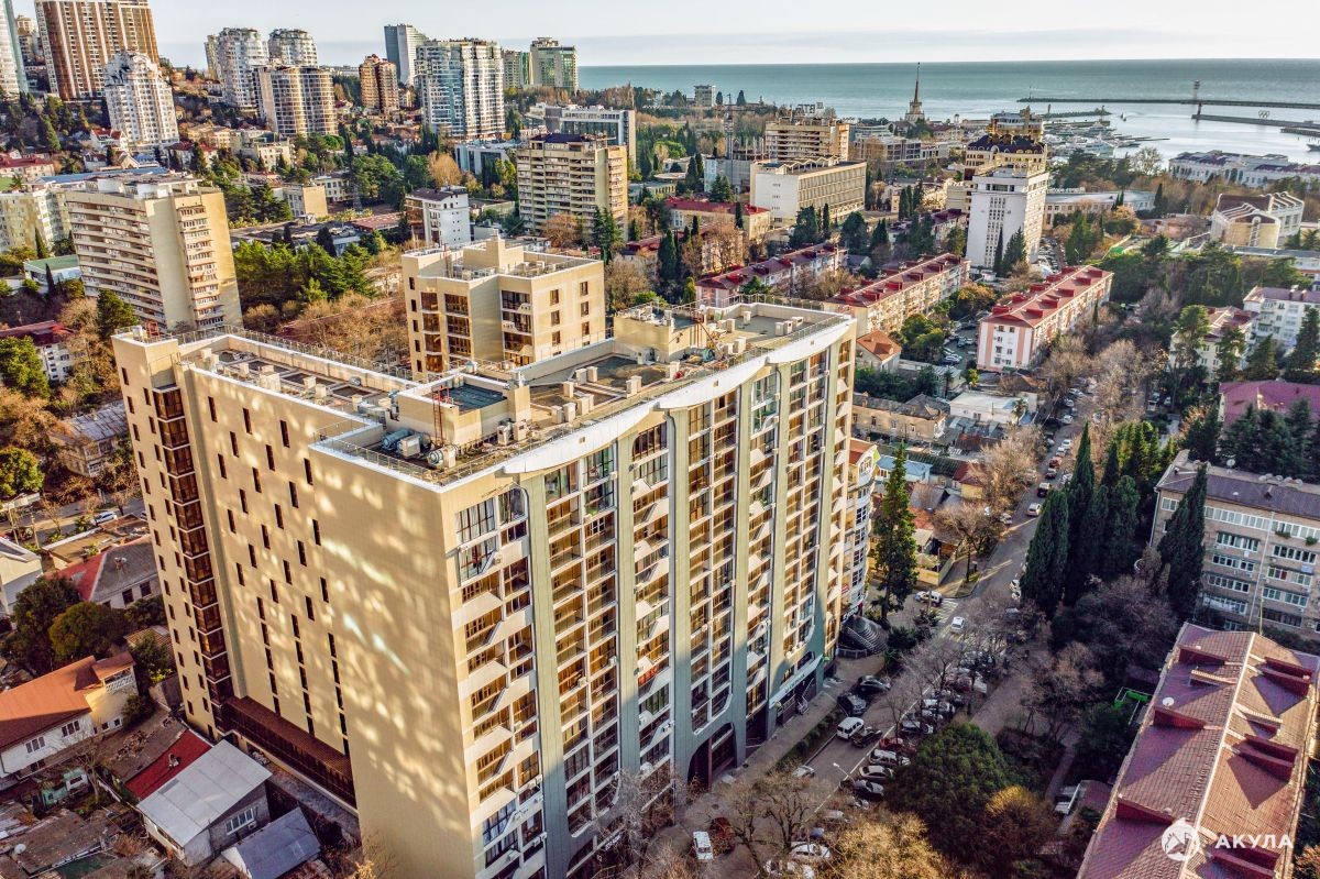 В непосредственной близости находятся пляжи, парк "Ривьера", центральный рынок, администрация города, несколько крупных банков, поликлиника, торговая галерея, школа, детский сад, кафе, рестораны, магазины. Современное монолитное здание состоит из двух секций. Оно возведено по самым современным и надежным технологиям, оборудовано комфортными тихими лифтами. На первом этаже расположатся коммерческие и офисные помещения, являющиеся частью инфраструктуры комплекса.