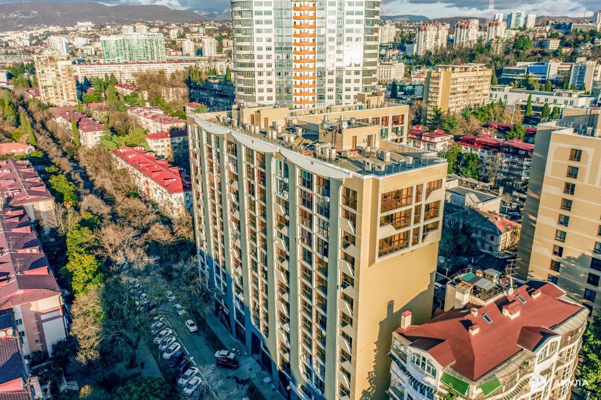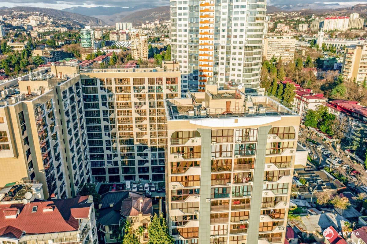 Квартира без ремонта, свободной планировки. В квартире оборудована гардеробная комната, большая кухня, удобная гостиная. Предусмотрен балкон. Из окон открывается красивый вид на город Сочи.