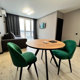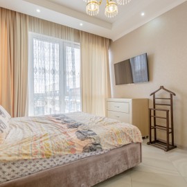 Продам квартиру в бизнес комплексе, в уютном и интимном месте от суеты города.Планировка квартиры в изолированную спальню и кухня-гостиная.Вид из панорамных окон на сквер и горы.На территории комплекса:спортивная площадка, четыре детских площадки, фонтаны, выход в...