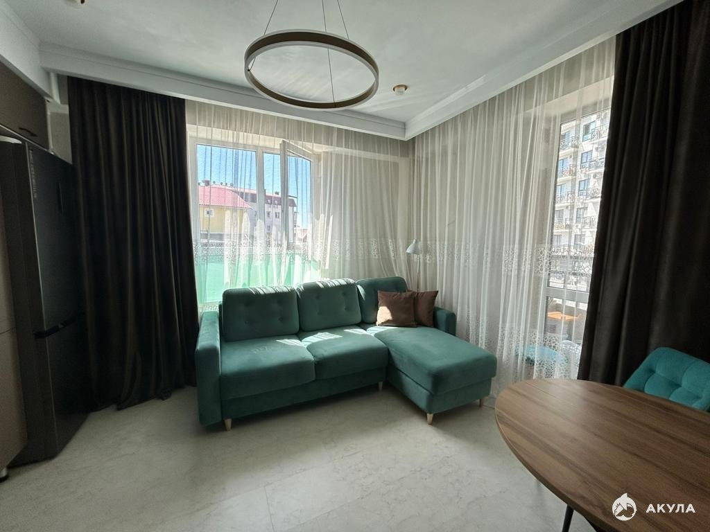 В продаже отличная евродвушка с новым евроремонтом, мебелью и техникой в новом жилом комплексе бизнес-класса в Центральном Сочи.