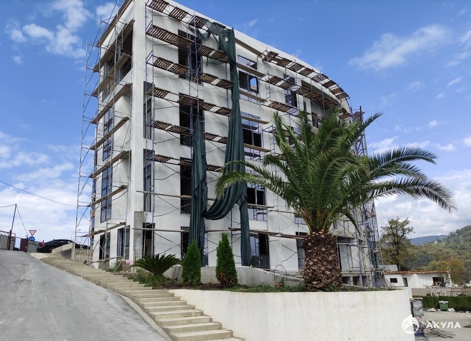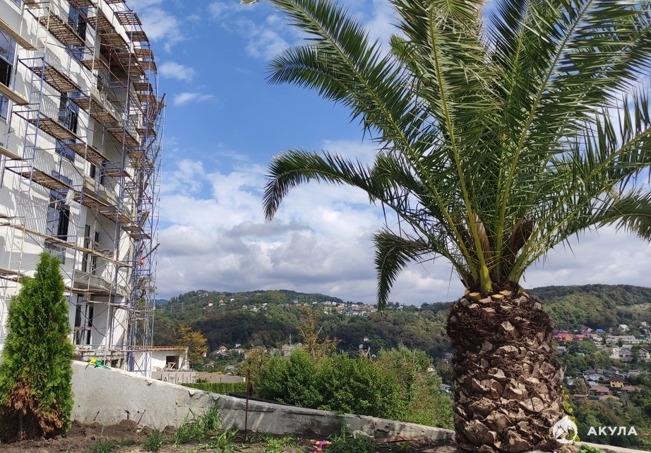 В уже имеющимся корпусе комплекса имеются разноплановые квартиры, из которых: двухуровневые квартиры; квартиры с собственными, обособленными террасами; квартиры с различной планировкой, видовыми характеристиками и др. Из окон Южного и Восточного фасада открывается великолепный вид на зеленый массив города и одну из главных достопримечательностей города- гора «Ахун», с Северной и Западной стороны на центральную часть г. Сочи.